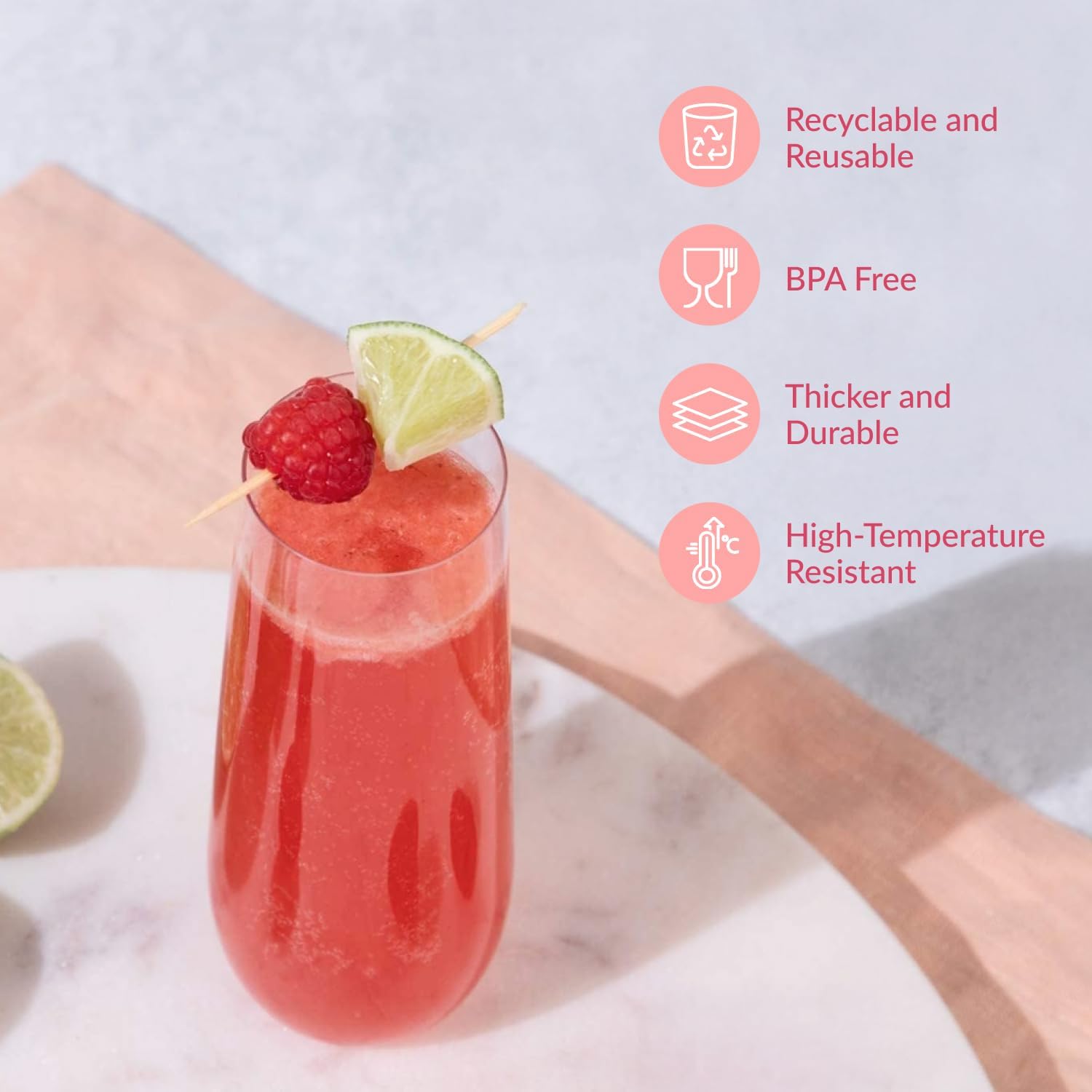 • 9 oz Capacity with Glass-Like Clarity - Each flute holds 9 oz and features crystal-clear construction, making these champagne glasses look sophisticated while remaining shatterproof