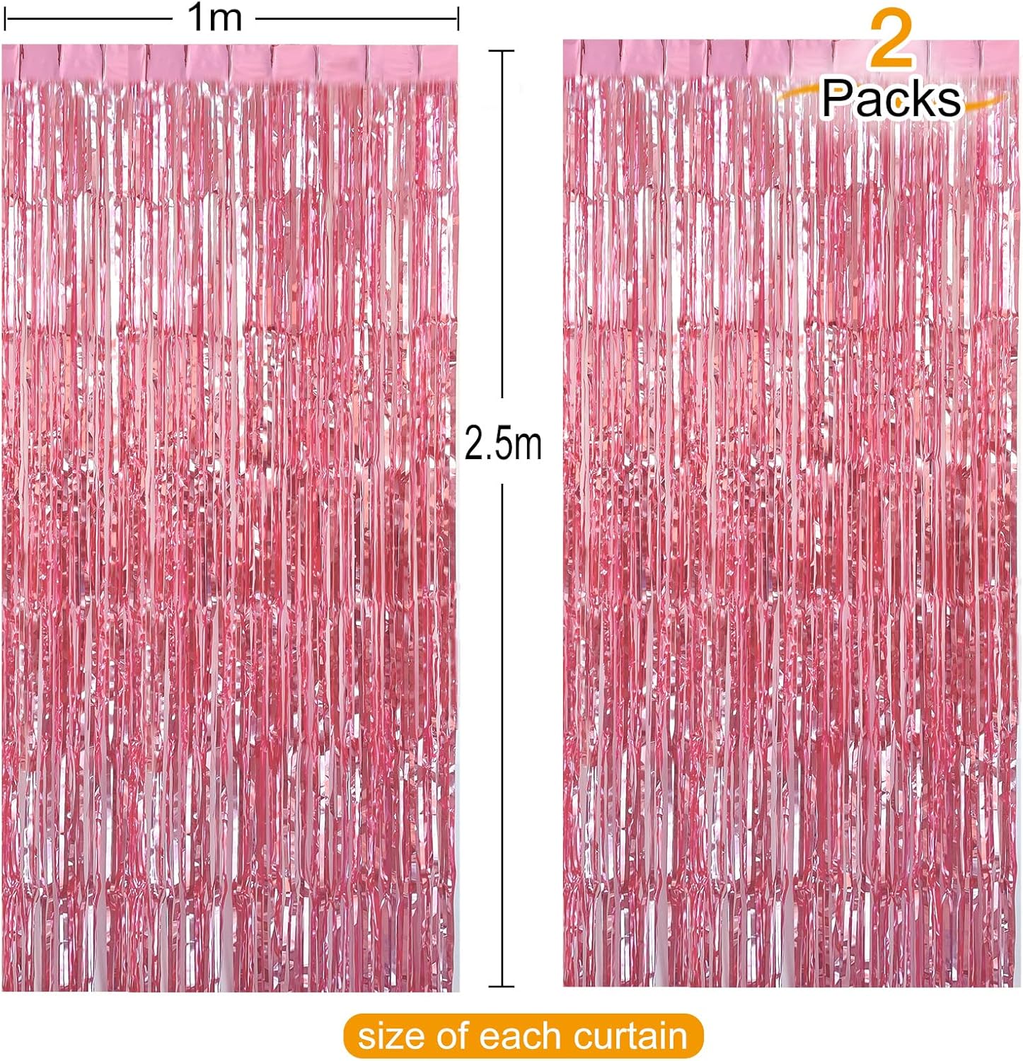 • Each Set Includes: 2 x Pink tinsel curtains; Big size (wide x drop): 1 x 2.5 m/ 3.2 x 8.2 feet, suitable for decorating doors and walls, enough length for decorating your party
