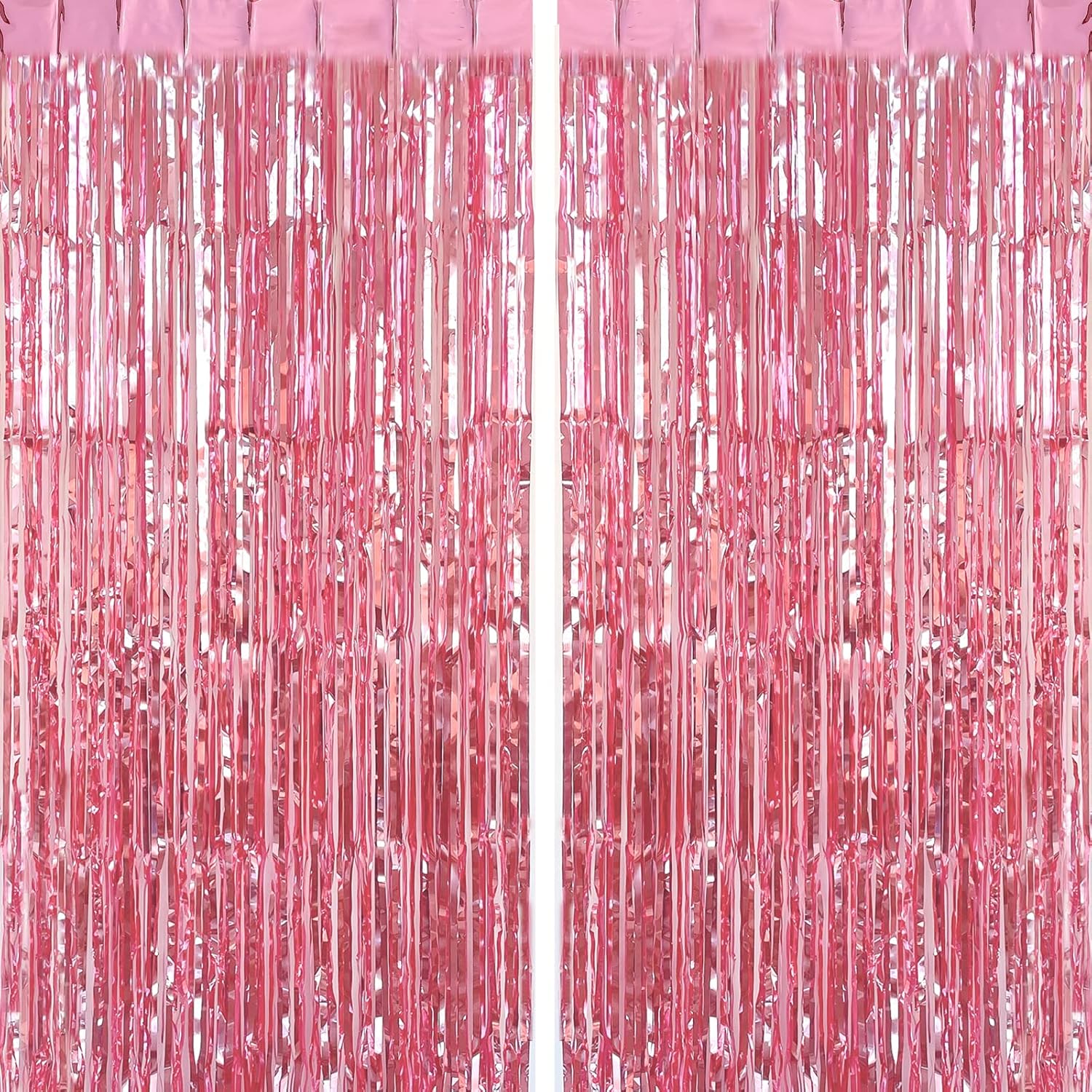 CHRORINE 2pcs 3ft x 8.3ft Pink Tinsel Foil Fringe Curtains Streamers Backdrop for Pink Party Birthday Wedding Bachelorette Baby Shower Bridal Shower Decorations