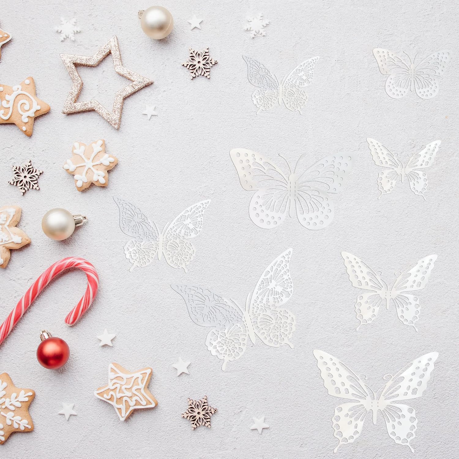 Gyufise 36 Pack Silver Laser 3D Butterfly Cupcake Toppers Hollow Cake Decorations for Birthday Wedding Fairy Party Wall Sticker Decal