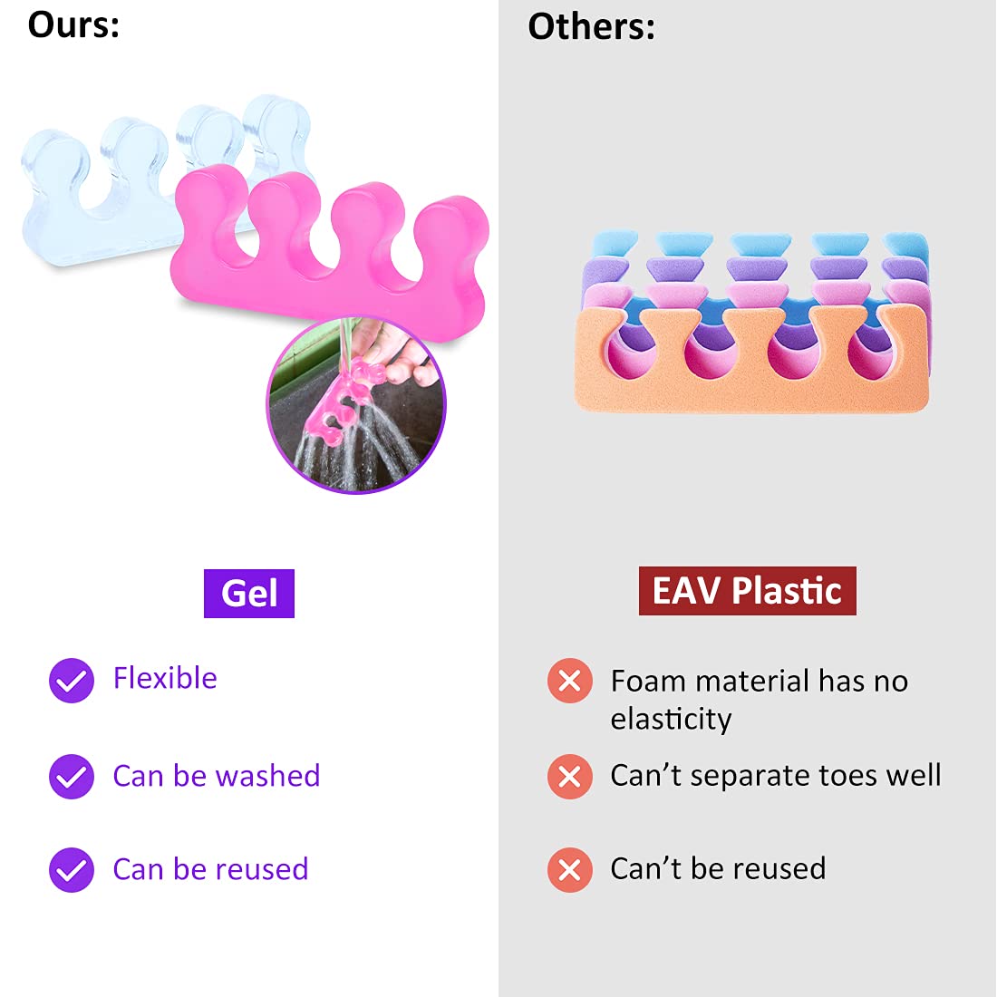 • 🌹【Reusable, easy to clean】Toe Separators for Pedicurecan be cleaned repeatedly,and jelly material that can be used multiple timesis not easy to deform.Upgraded version of Foam pedicure toe separator.Rinse once with water before use.【Service】We love our customers,If you are troubled by product problems,please contact us as soon as possible to solve it for you,including return or exchange.