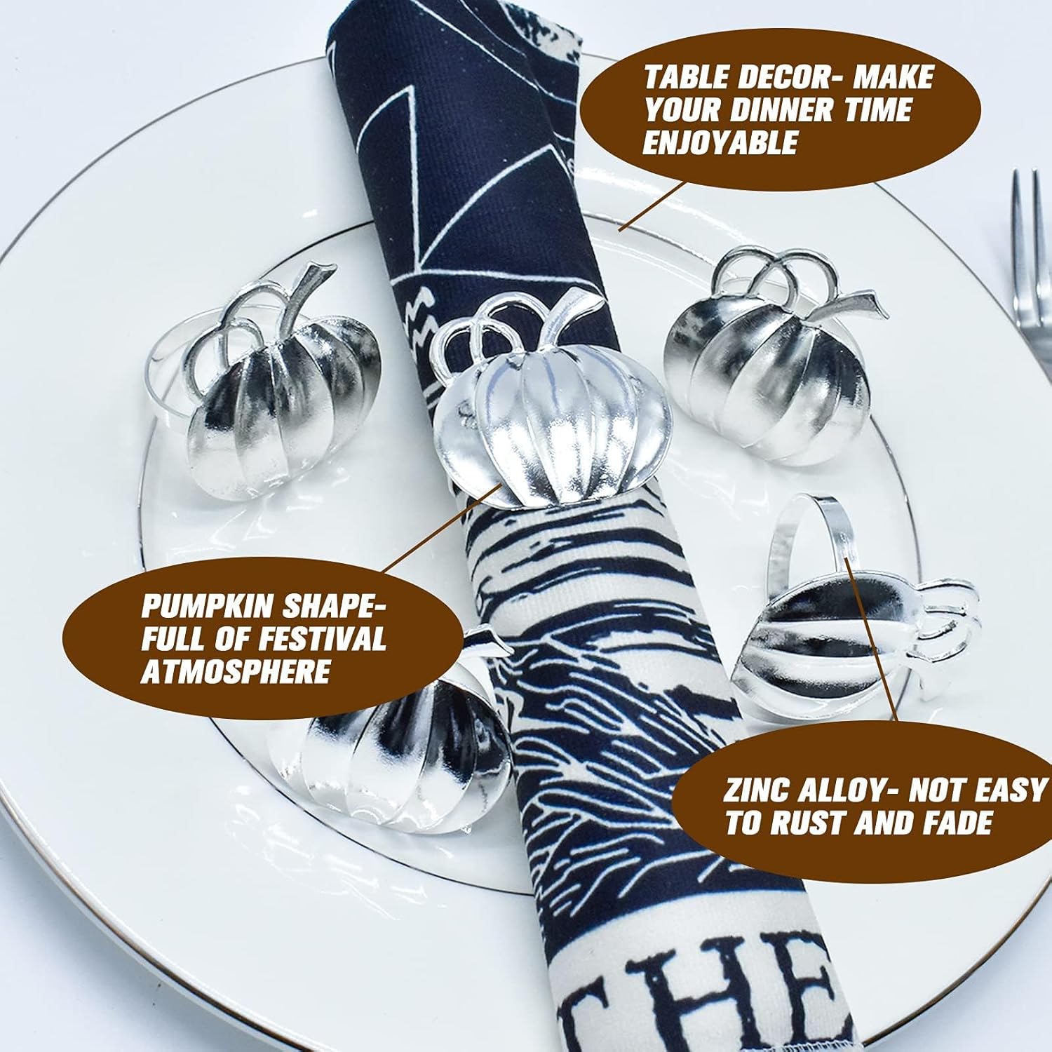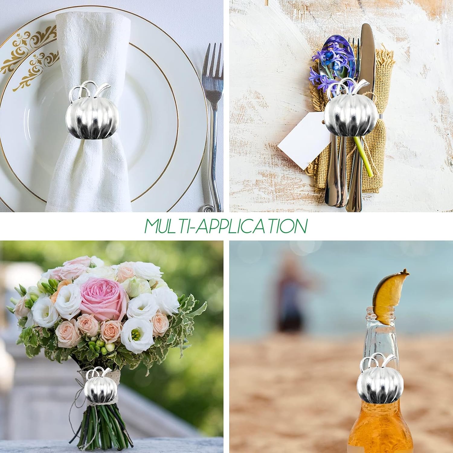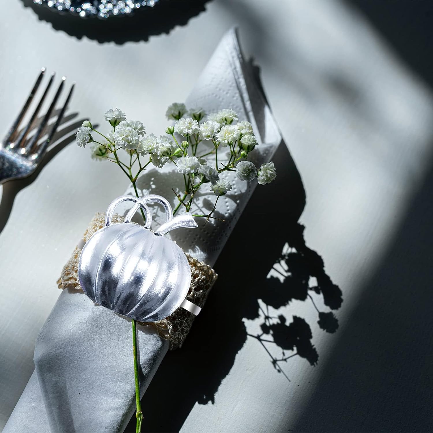 • πŸŽƒπŸγ€VINTAGE PUMPKIN】Realistic harvest silver pumpkin design, looks simple and beautiful, connected with ring tightly and not fall off, really added a delicate to your table, bring lots of fun to your dinner time, and impress every guest deeply at your dinner party.