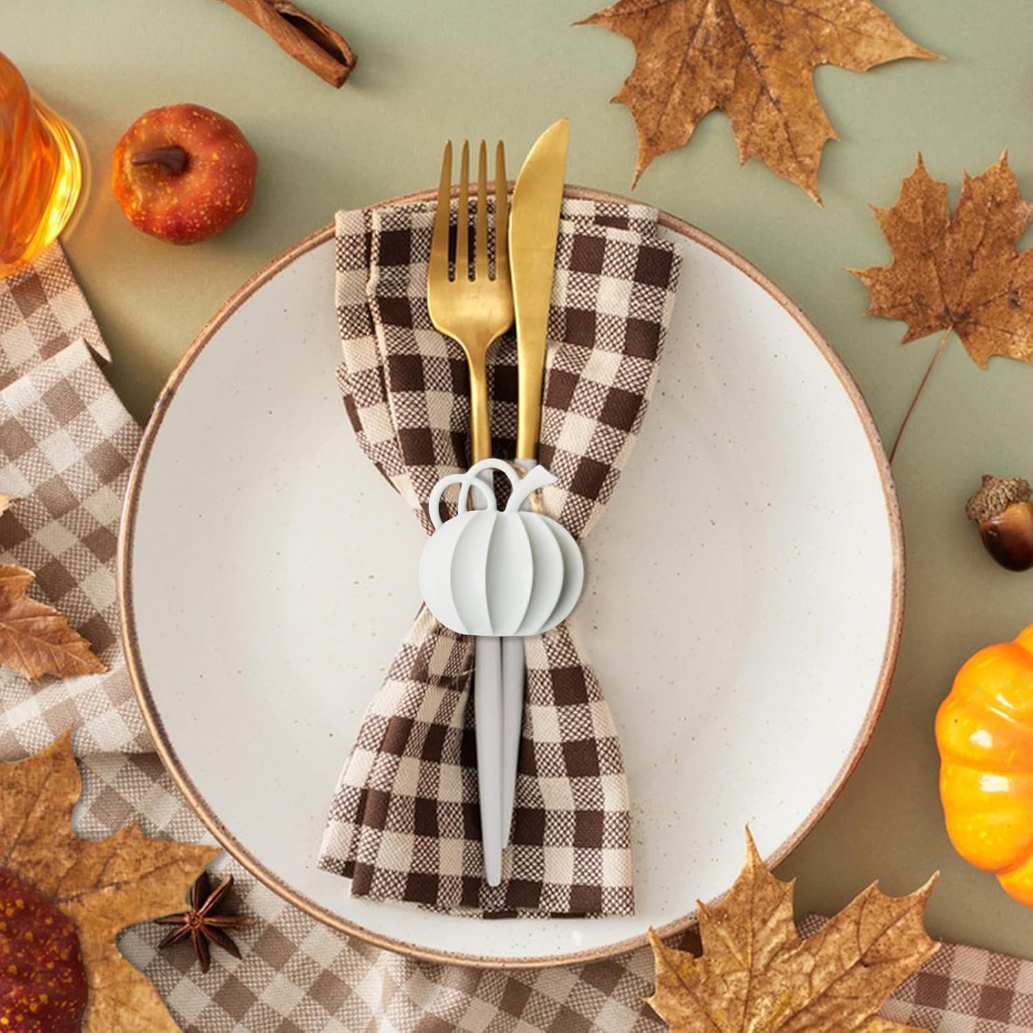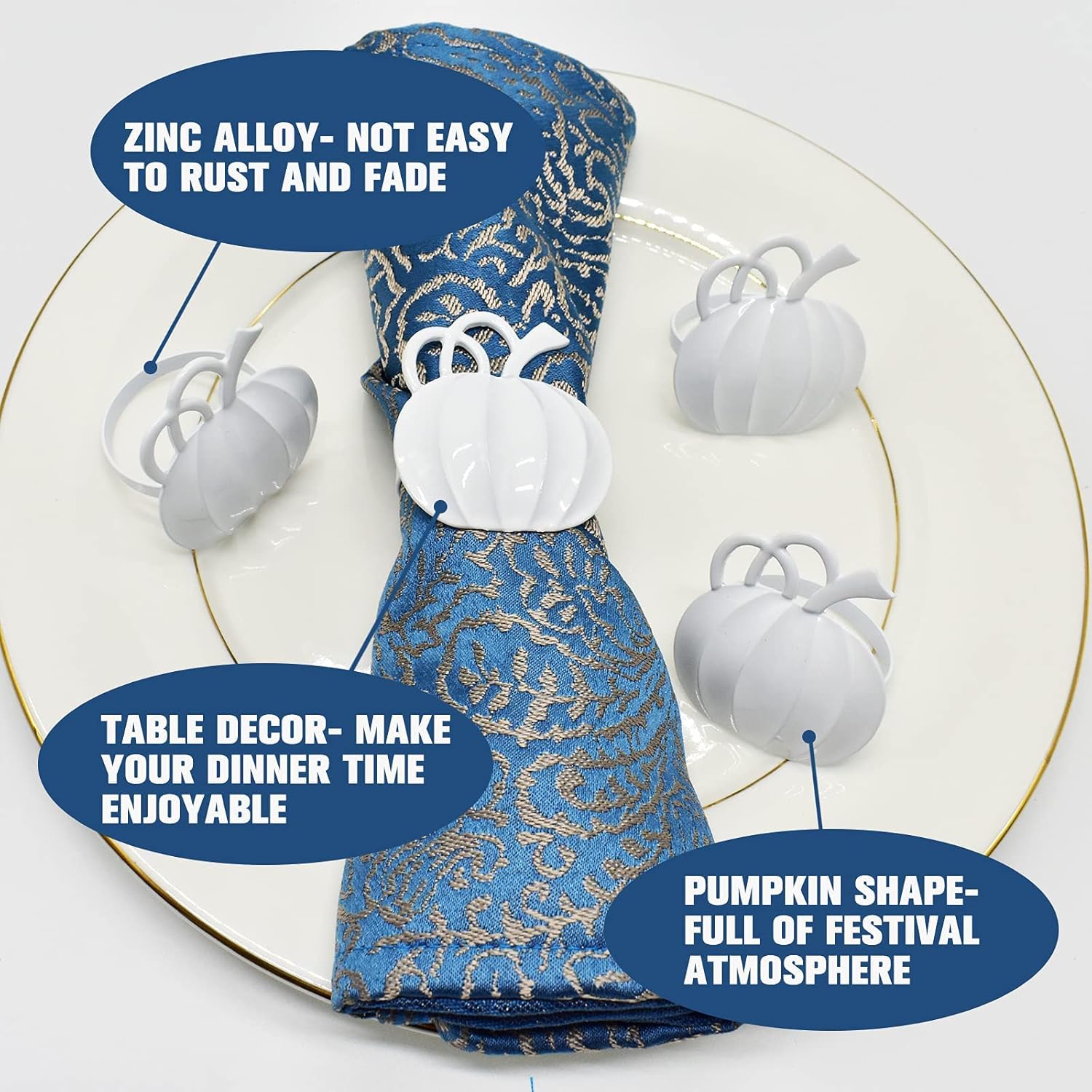 Halatool Thanksgiving Pumpkin Napkin Rings Set of 12, Alloy Fall Napkin Rings Dinner Tables Holders for Thanksgiving Halloween Weddings Holidays Gathering Dinner Party (White)