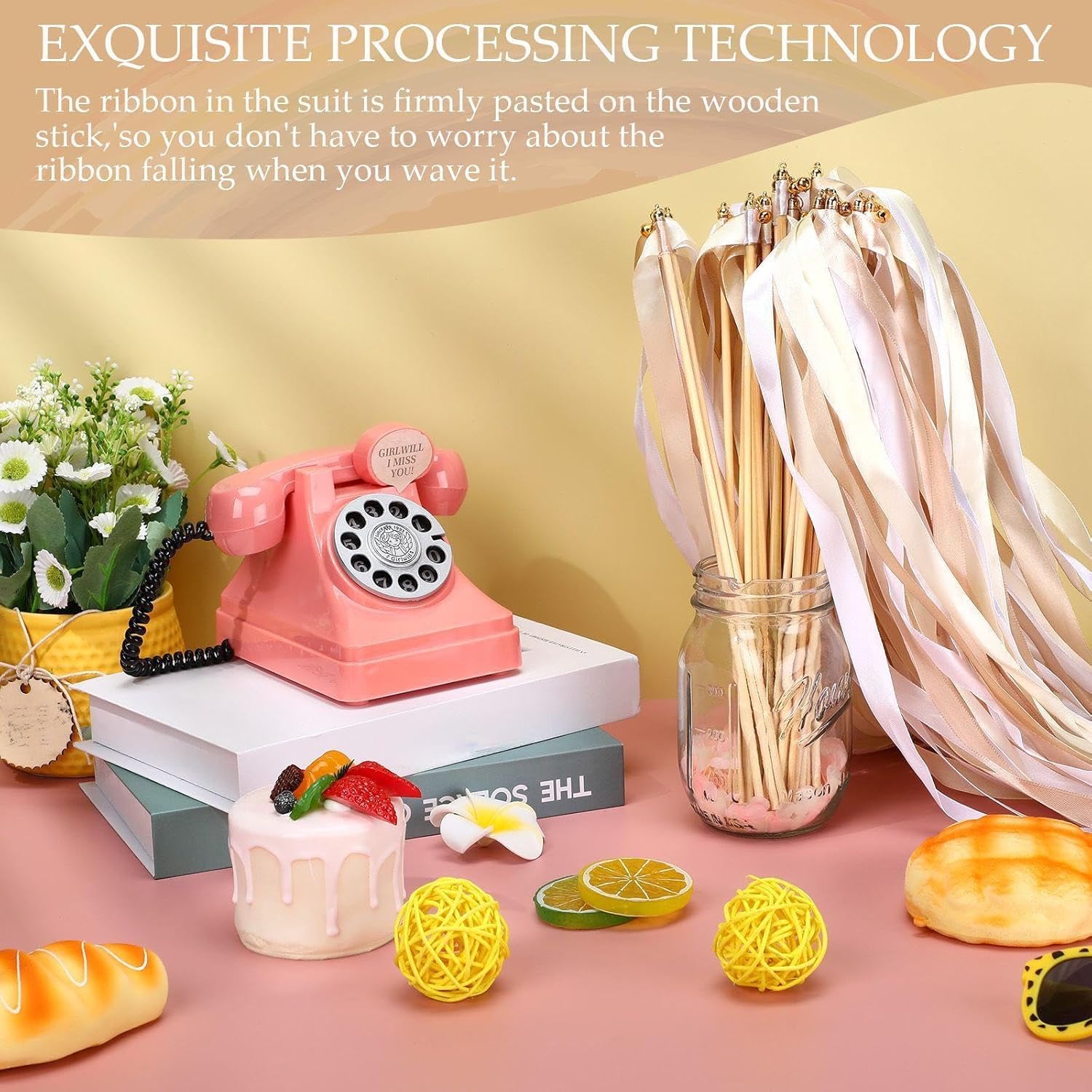 • Sizes: the length of stick is approx. 30 cm/ 12 inches; Ribbons length is 50 - 60 cm/ 20 - 24 inches, 1.6 cm/ 0.6 inches in width; Warm note: please store them in dry place