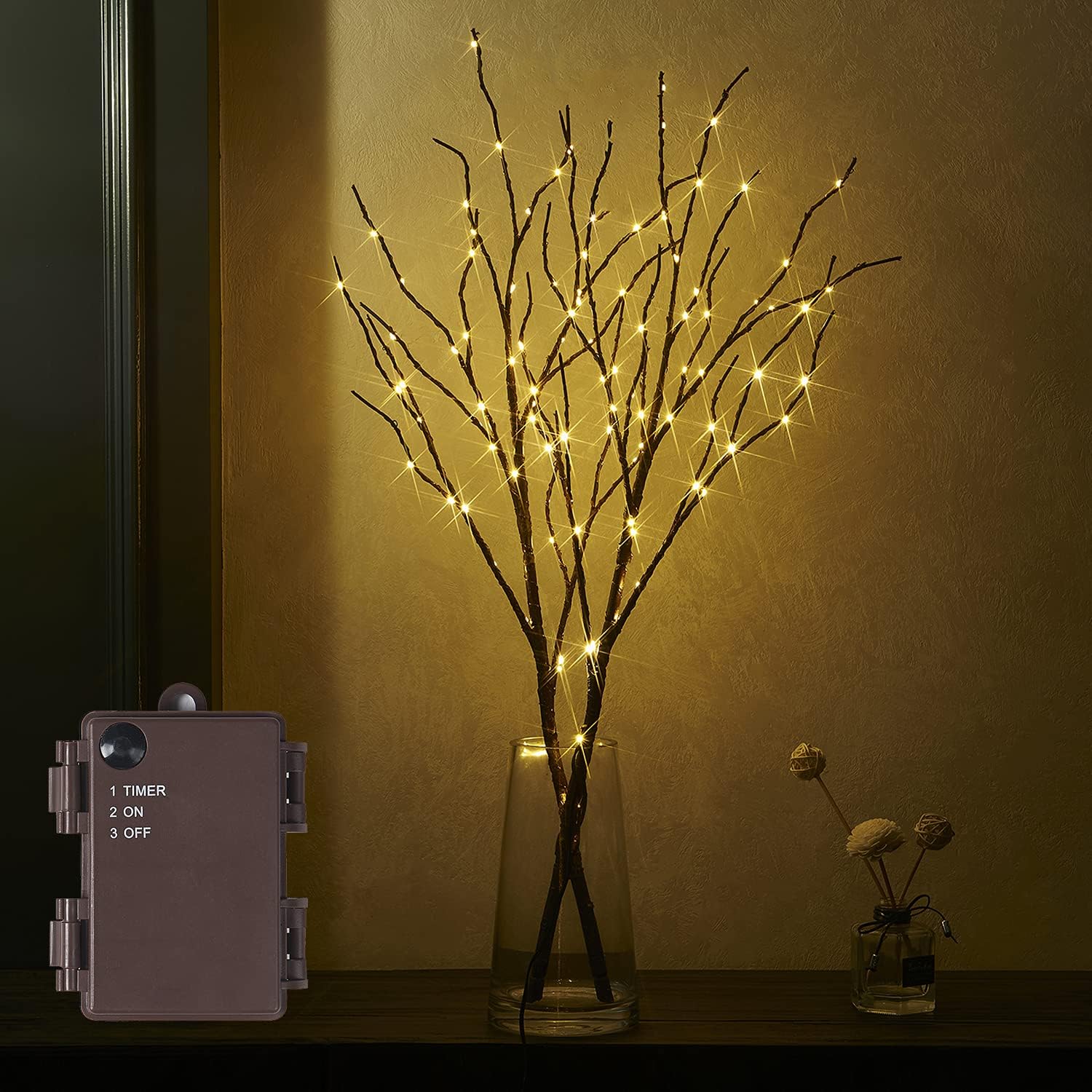 Fudios Branch Lights Battery Operated with Timer 32IN 100 LED, Fake Willow Branches with Fairy Lights for Vase, Lighted Twig Tree Branches Indoor Outdoor Christmas Party Home Decor 2 Set