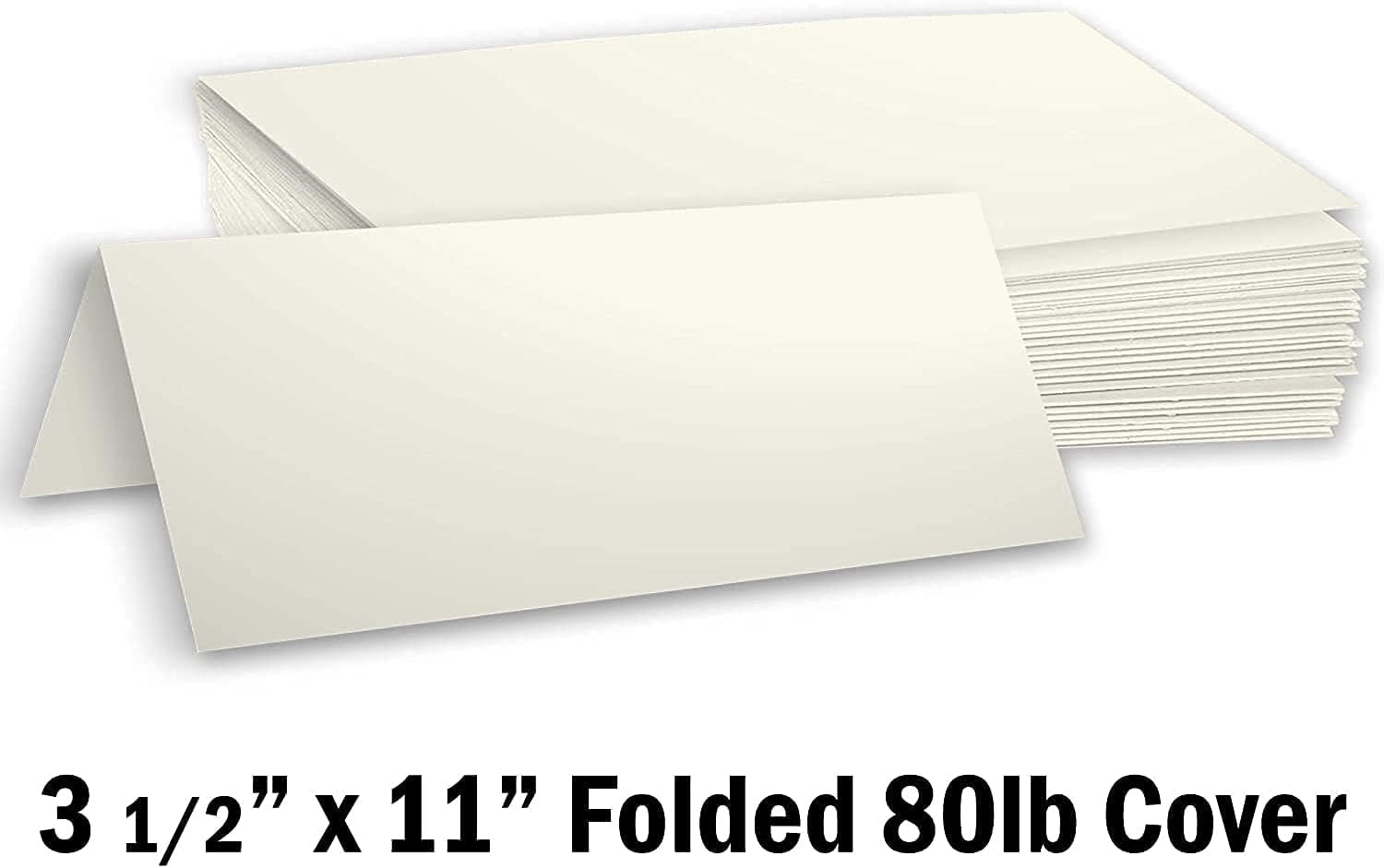 Hamilco Blank Tent Name Place Table Cards 3 1/2" x 11" Folded Card Stock - Cream Cardstock Paper 80lb Cover - 100 Pack