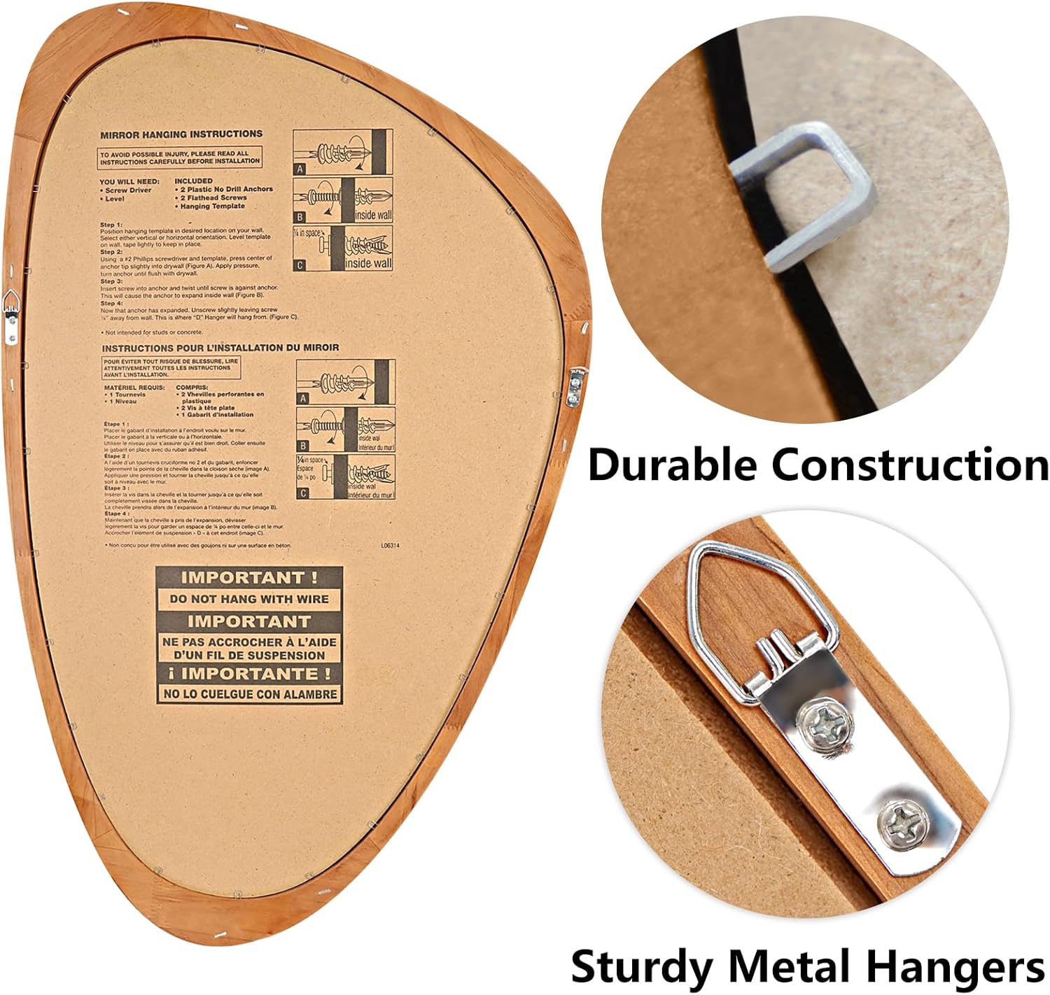 WallBeyond Asymmetrical Mirror, Irregular Wall Mirror, Wall Mirrors Decorative for Bedroom Living Room Entryway Hall, Wood Mirror for mid Century Modern Decor 30" H x 19" W