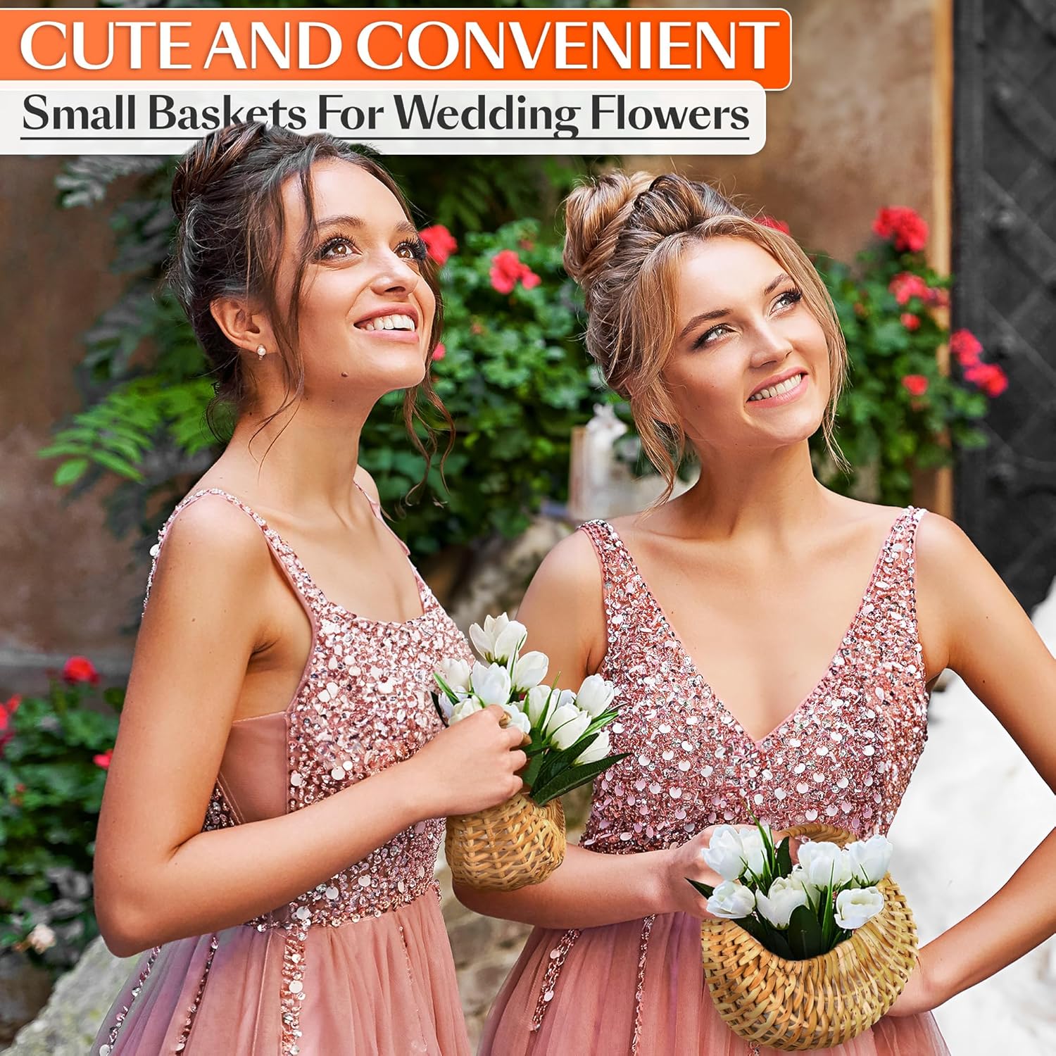 • Compact Size: Measuring 6.3" x 3.75" x 5.12", this wicker flower girl baskets set of 2 is suited for weddings & floral courses. This small basket with handle is a versatile addition to any occasion
