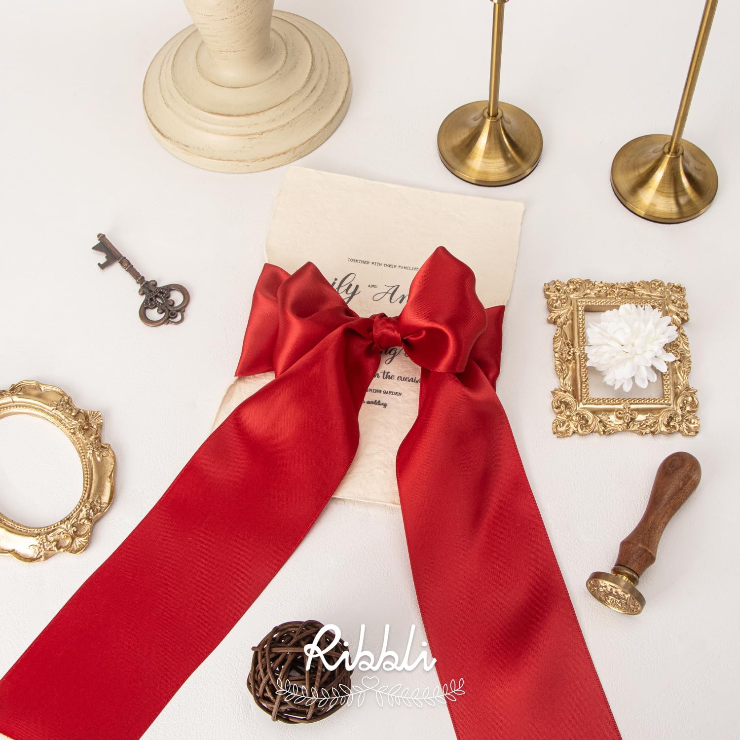Ribbli Red Double Faced Satin Ribbon, 3” x Continuous 10 Yards,Use for Bows Bouquet,Christmas Gift Wrapping,Floral Arrangement