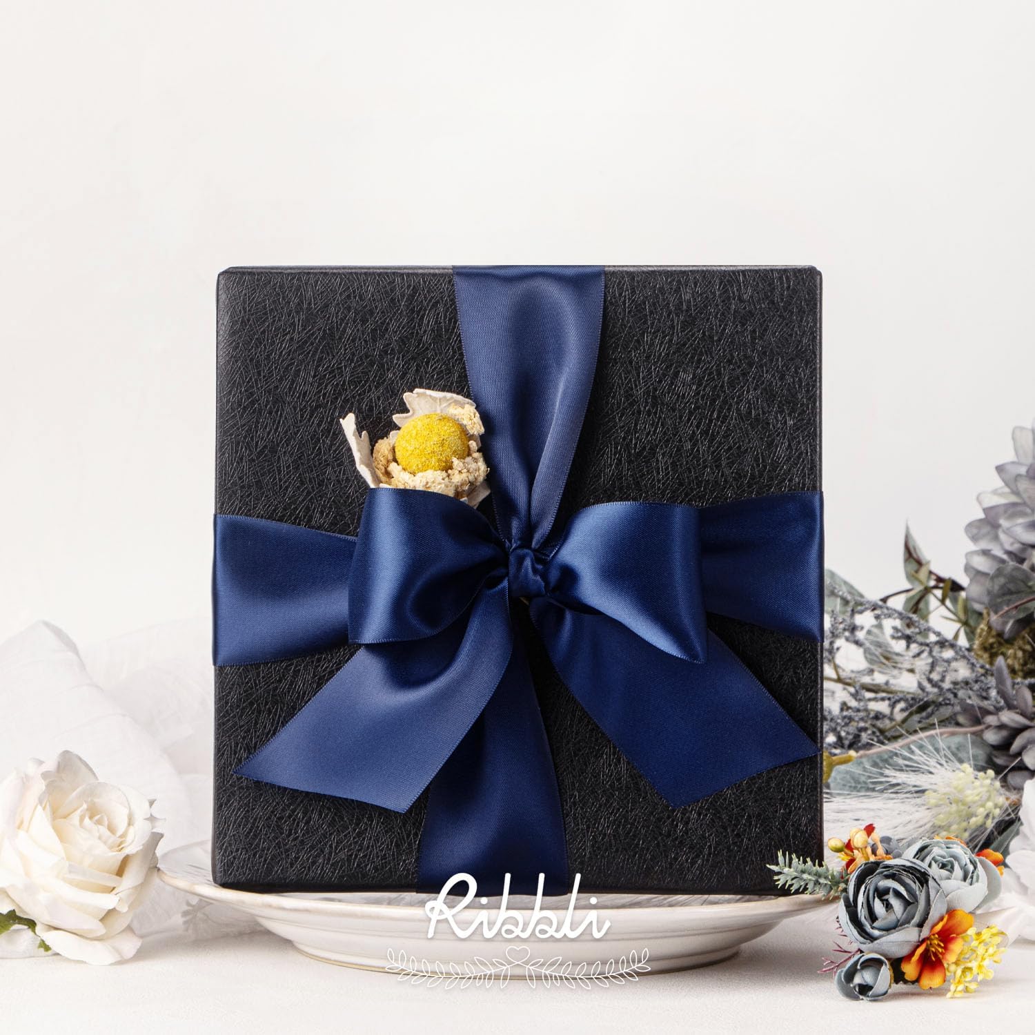Ribbli Navy Double Faced Satin Ribbon, 2” x Continuous 10 Yards,Use for Bows Bouquet,Gift Wrapping,Floral Arrangement,Wedding Decoration