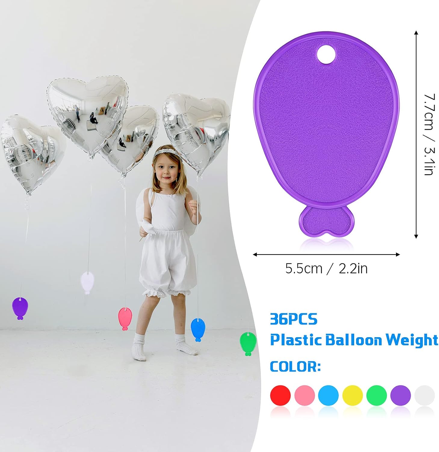 Aoriher 36 Pcs Colorful Plastic Balloon Weights Balloon Shaped Weights for Birthdays Weddings Party Holiday Celebration Decoration Supplies, White Purple Red Green Yellow Blue Pink