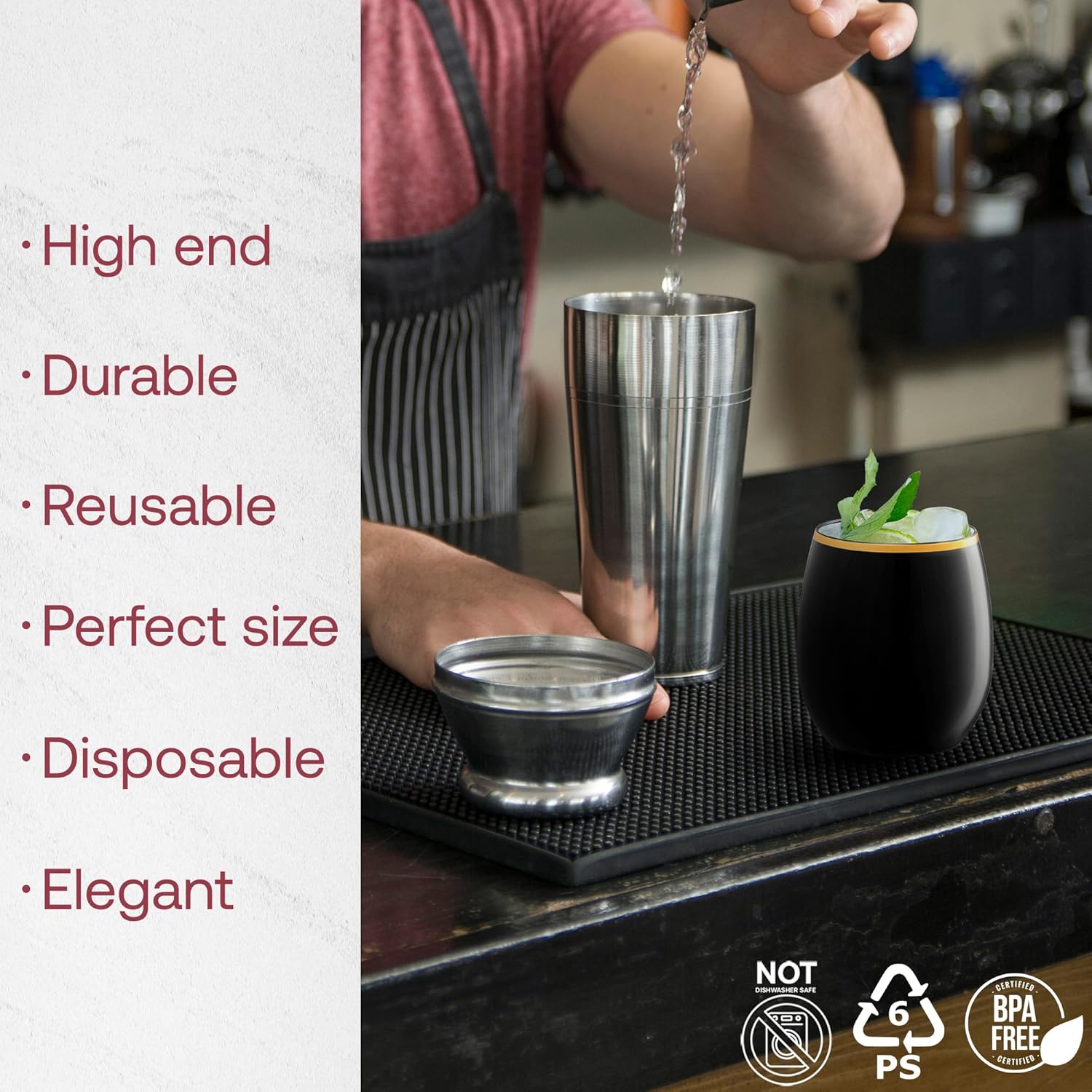 • ELEGANT BLACK & GOLD STEMLESS DESIGN – Make a statement with these stylish 12 oz stemless wine glasses featuring a sleek black body and refined gold rim, ideal for elevating any event’s aesthetic.