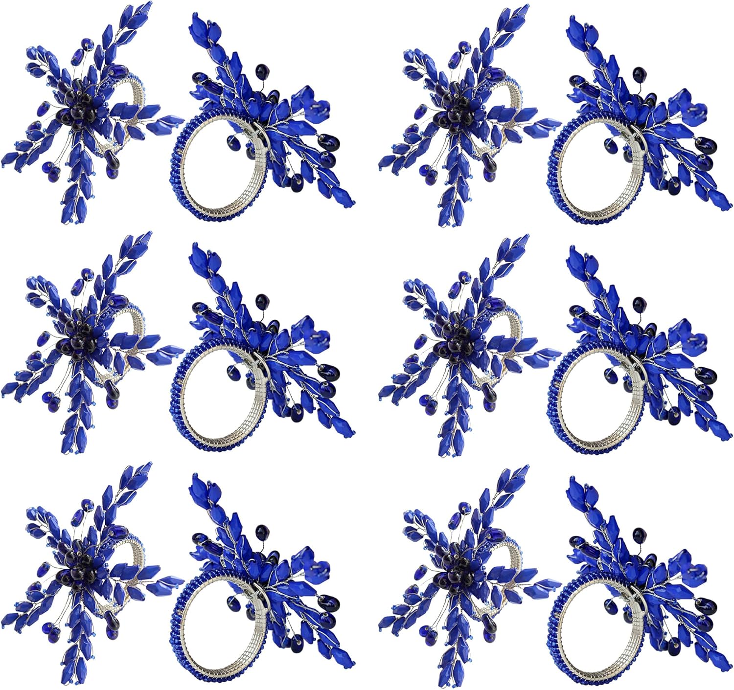 Napkin Rings Set of 12 for Dining Table Decoration Parties Everyday Metal Napkin Holder Leaf Blue (Pack of 12)