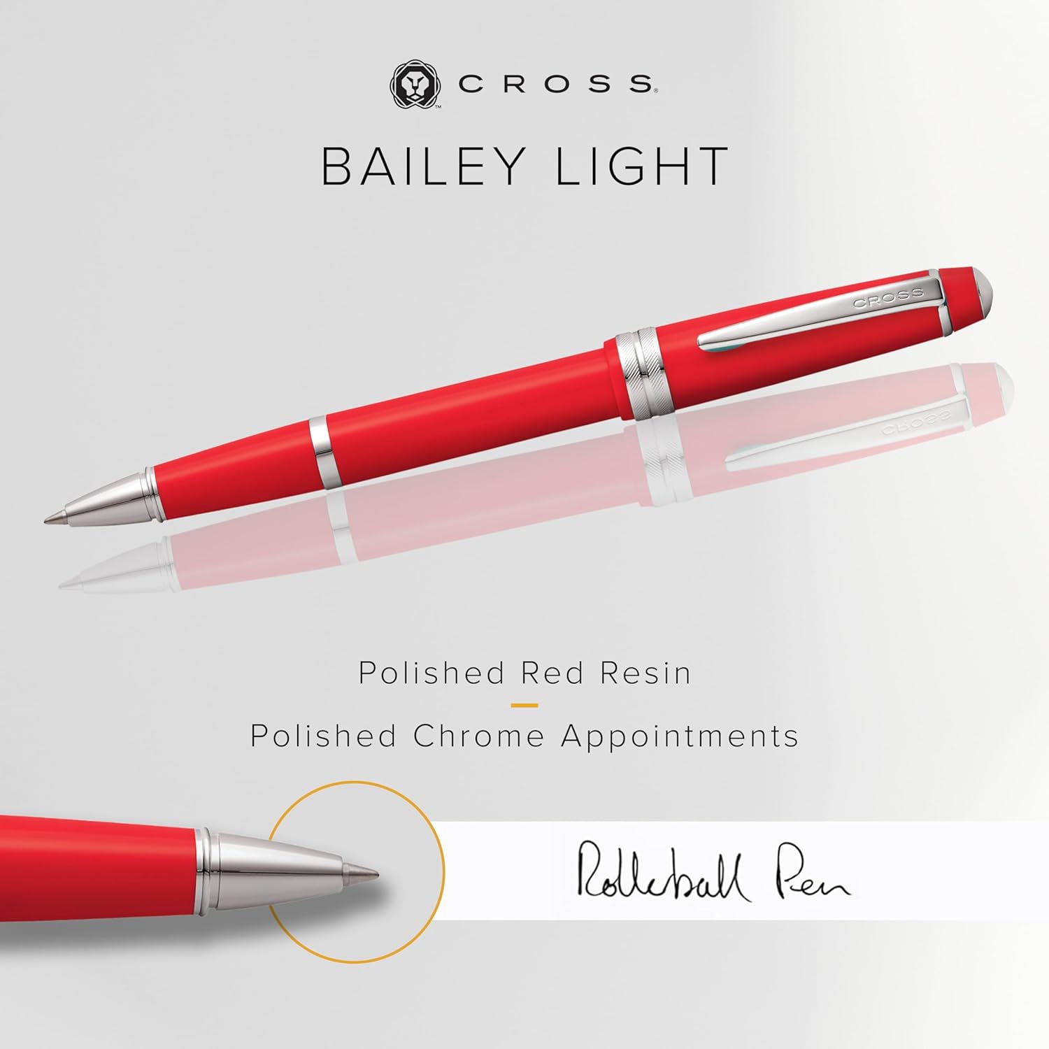 • DISTINCTIVE DESIGN: Time-honored Cross quality in a timely lighter weight. Our Bailey Light pens share the statement-making appeal and dependable performance of the original Cross Bailey metal pen, but it weighs less in glossy resin. Comfortable in hand and pleasing to the eye, Bailey Light is an ideal choice for everyday journaling and note-taking.