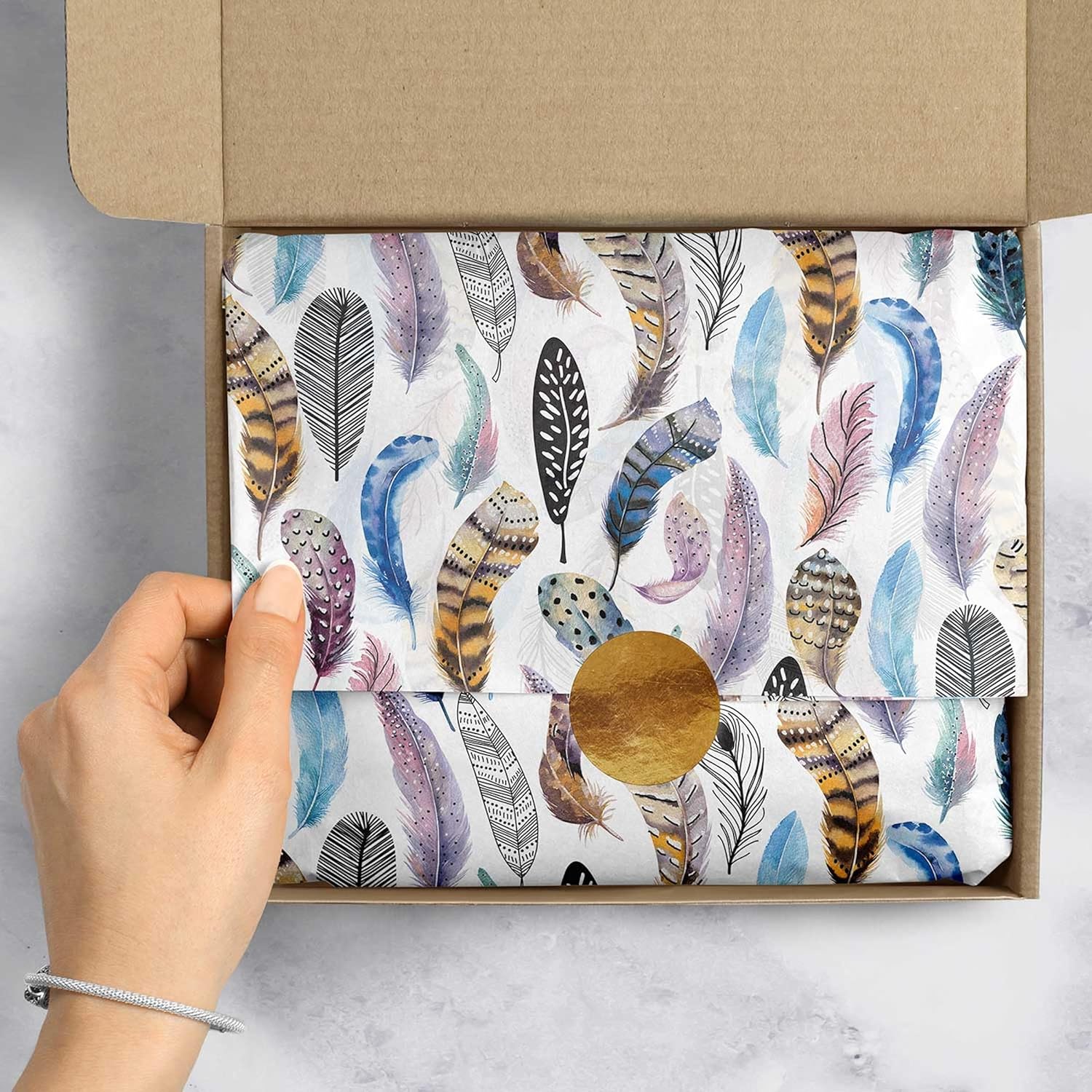 Colors of Rainbow - Feather - 12 Sheets, 20 inch X 29 inch - Italian Print Tissue Paper for Decoupage Gift Basket Gift Bag Party Crafts (Feather)