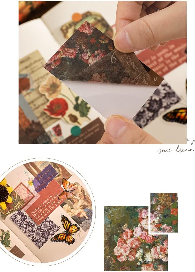 • The journal embellishment kit comes in different styles, their classic prints include plants, flowers, butterfly, insect, figures, architecture, sky, clouds, moon, news paper retro old time memory letter sheet and so on, which look very classic and vintage, not easy to go out of date, bringing you enjoyment. These different style and sufficient quantity washi stickers can meet your daily use and replacement.