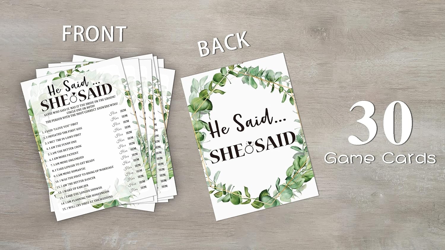 Bridal Shower Game Cards, He Said She Said Game, Tropical Jungle Theme Engagement Party Cards For Wedding, Set of 30 (Leaf002)