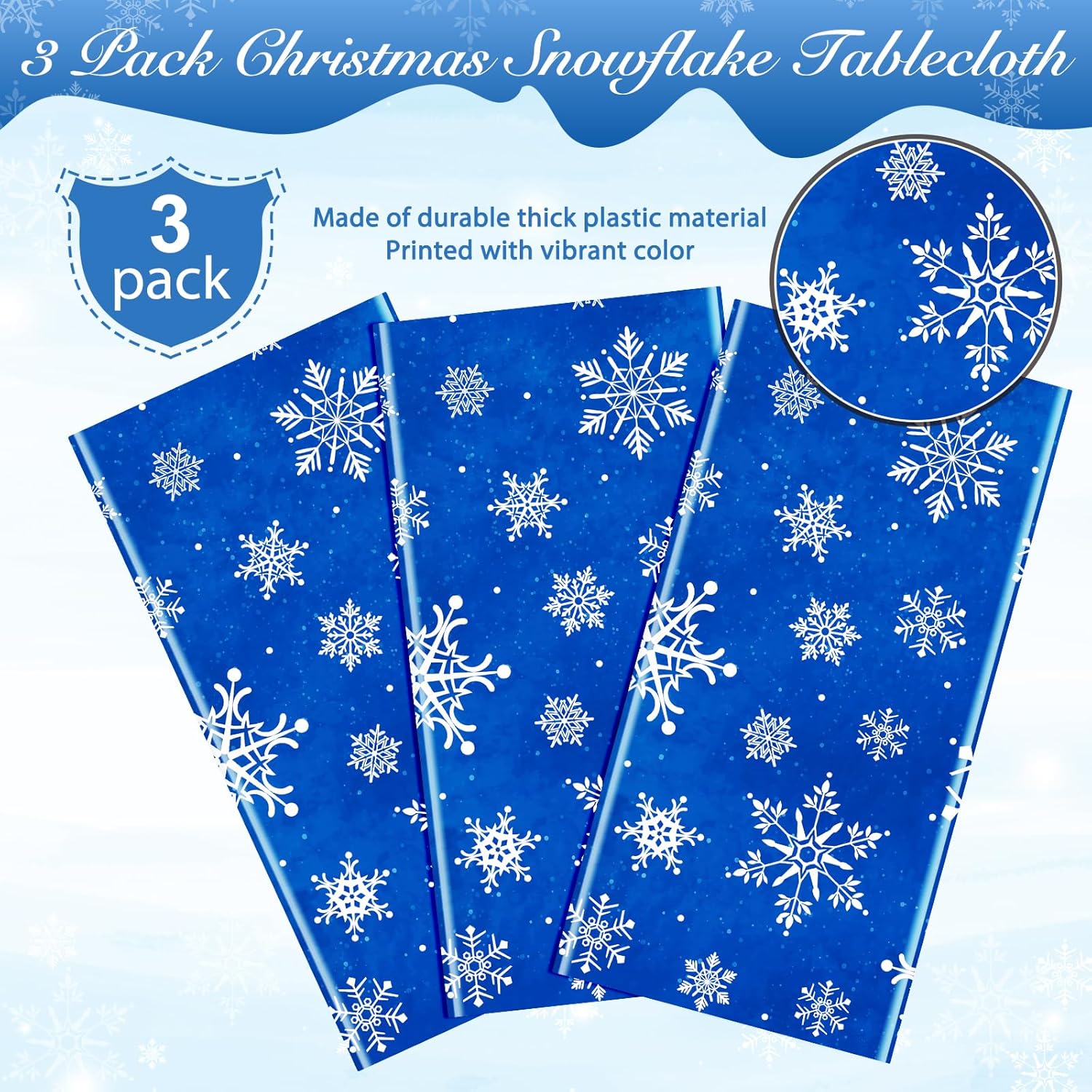 • What will you receive:3 pieces rectangular christmas party tablecloth,all over printed with white snowflake partterns on bright blue backdrop,ideal for decorating your winter holiday and Christmas party supplies and decorations