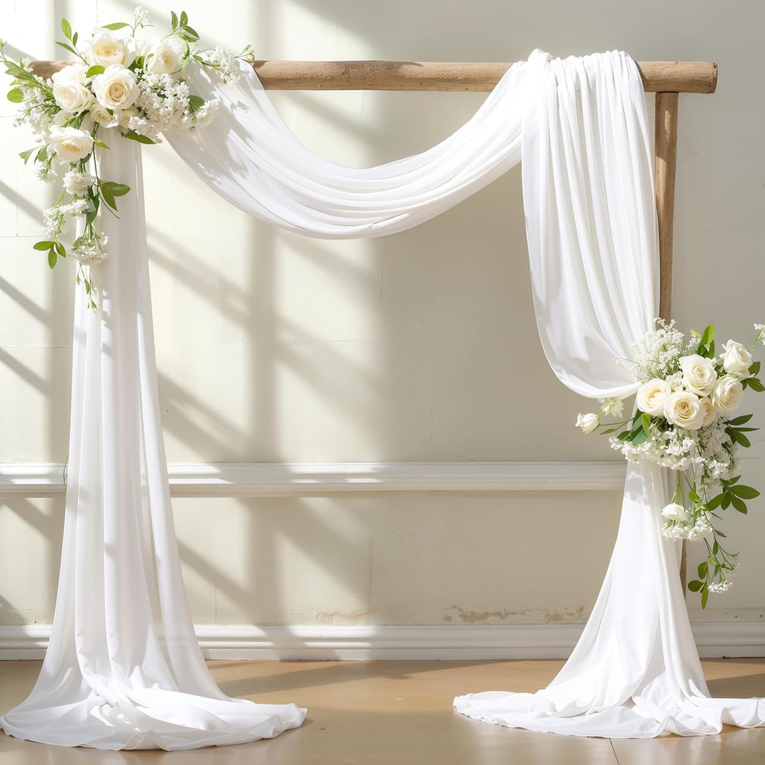 Wedding Arch Draping Fabric,2 Panels 18FT White Wedding Arch Drapes Chiffon Fabric Drapery Arch Decorations for Ceremony Reception Party Ceiling Backdrop