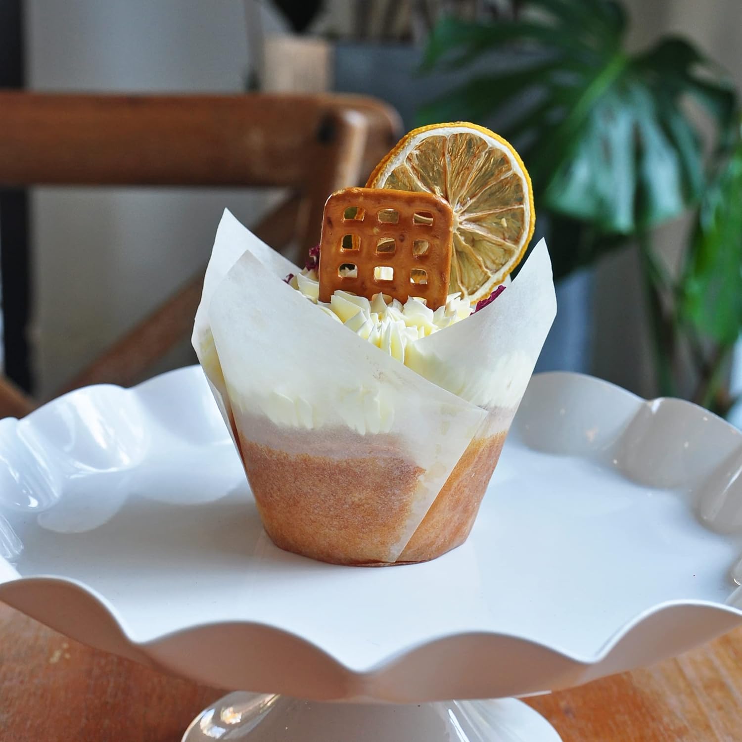 Large size White Tulip Baking Cups 2-1/4"(Base diameter) x 4"(Wall height) Greaseproof paper baking cupcake Muffin liners, Case of 130 pcs