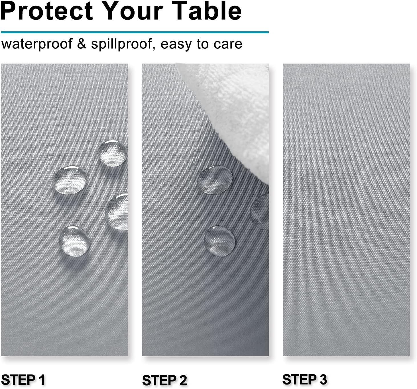 • Waterproof and Spill-proof Table Cloths: Featuring a fade and spill resistant polyester fabric, our tabletop covers easily protect your tables and furniture from scratches, stains and sun rays
