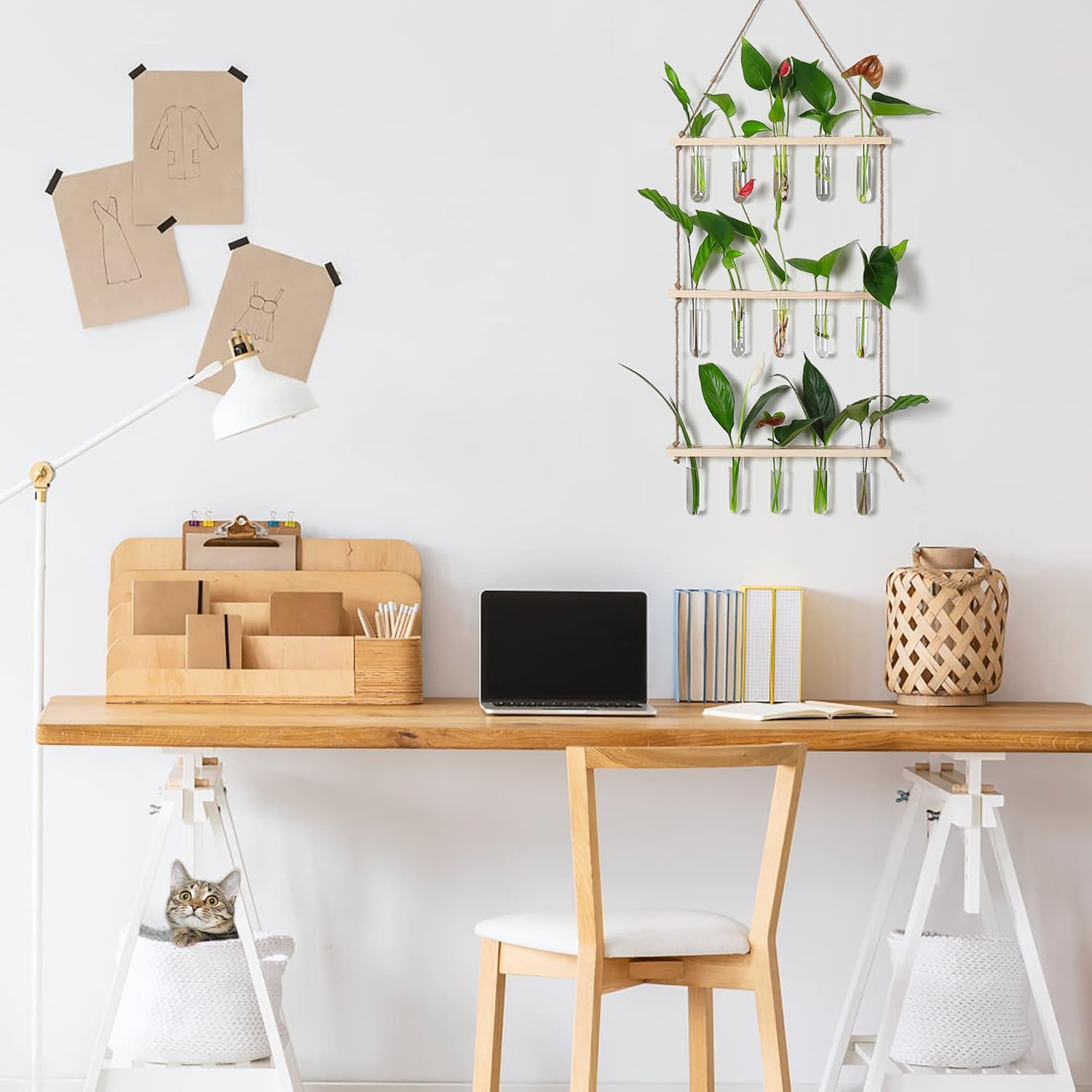 YIBOT Propagation Stations,3 Tiered of Propagation Tubes with Wooden Stand,Mini Glass Test Tubes Vase,Plant Terrarium for Hydroponic Home Garden Office Decor, Gardening Gift for Women Plant Lover