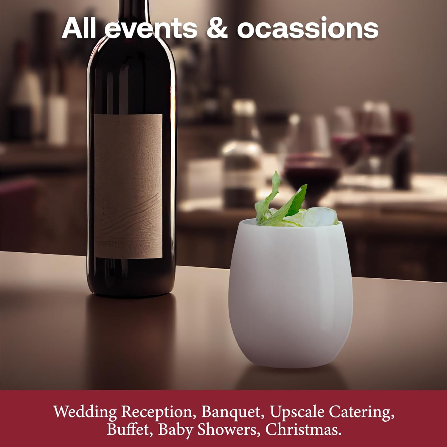 • STYLISH WHITE STEMLESS DESIGN – These 12 oz stemless wine glasses in chic white add sophistication to weddings, parties, and celebrations, creating a classy look for any occasion.