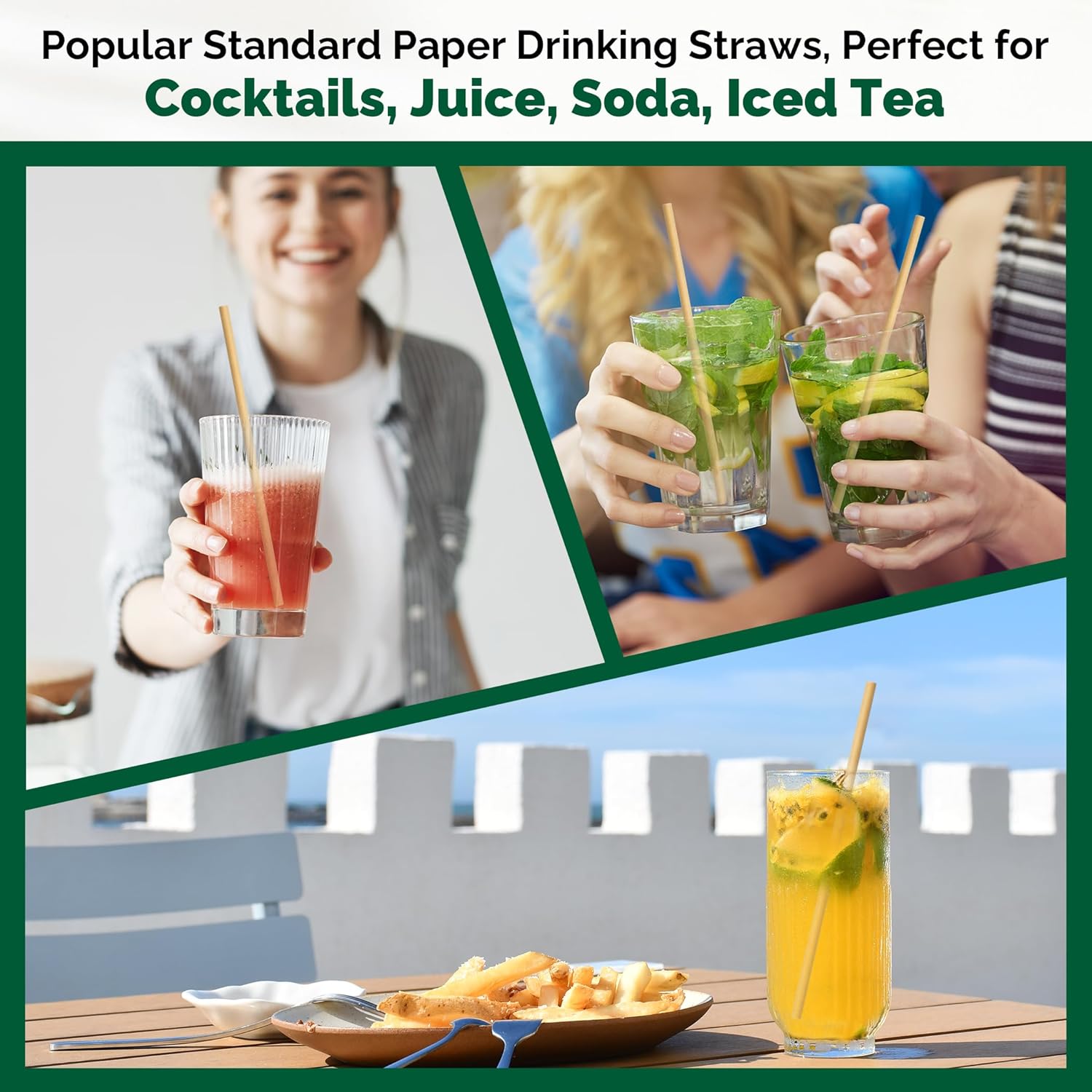 • Strong sturdy paper straws produced to top quality and work for both hot and cold drinks, lasting for hours in drinks. Great choice for bars, restaurants and food services.