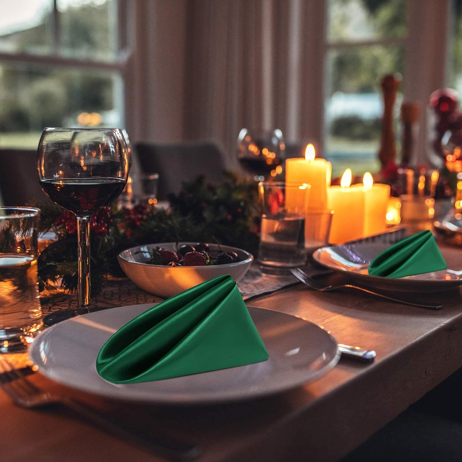 Aneco 24 Pieces Satin Napkin Square 20 x 20 Inches Dinner Napkins Weddings Party Napkin Soft Table Napkins for Romantic Weddings Party Dinner Decoration (Forest Green)
