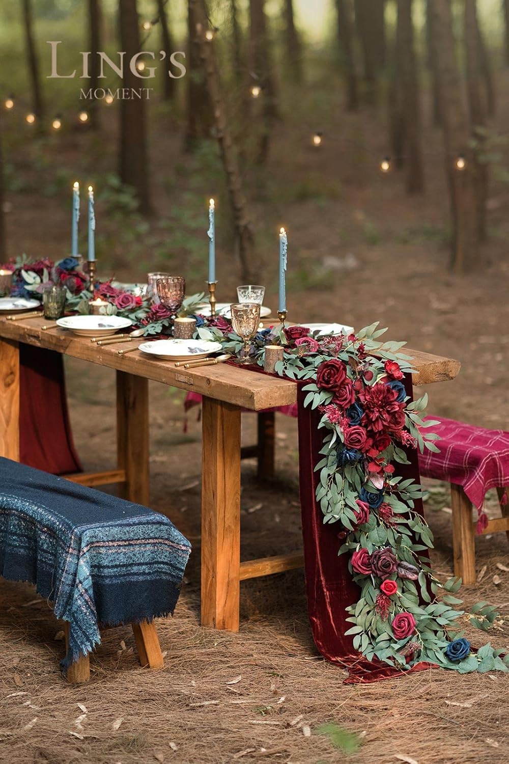 Ling's Moment Flower Garland - 6FT Eucalyptus & Rose - Sweetheart Table Decor for Wedding Reception, Artificial Floral Garland for Mantle, Thanksgiving, Christmas Decoration, Burgundy & Navy