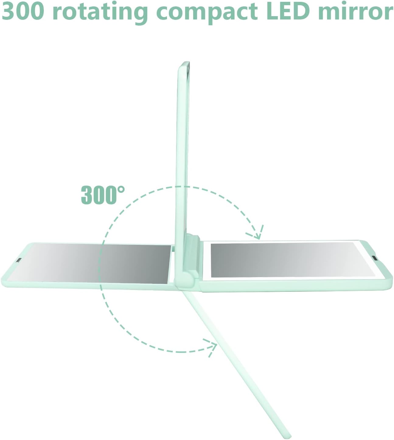 • 300°Flip Folding Travel Mirror:This lighted travel makeup mirror can achieve a 300-degree flip, so whether you want to use the magnified mirror or the illuminated mirror, you can place it at will.Can be handheld or stand on
