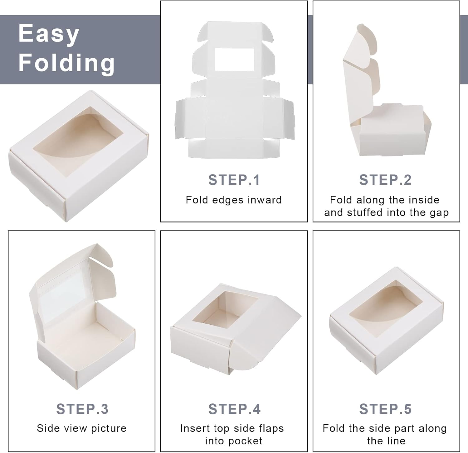 • Proper size: outer size after folded: 3.7 x 2.6 x 1.37 inch, Window size: 2.6 x 1.6 inch, enough for you to put some items in it; Exquisite size, transparent window display, ideal for all kinds of craft activities, party treats and celebrations