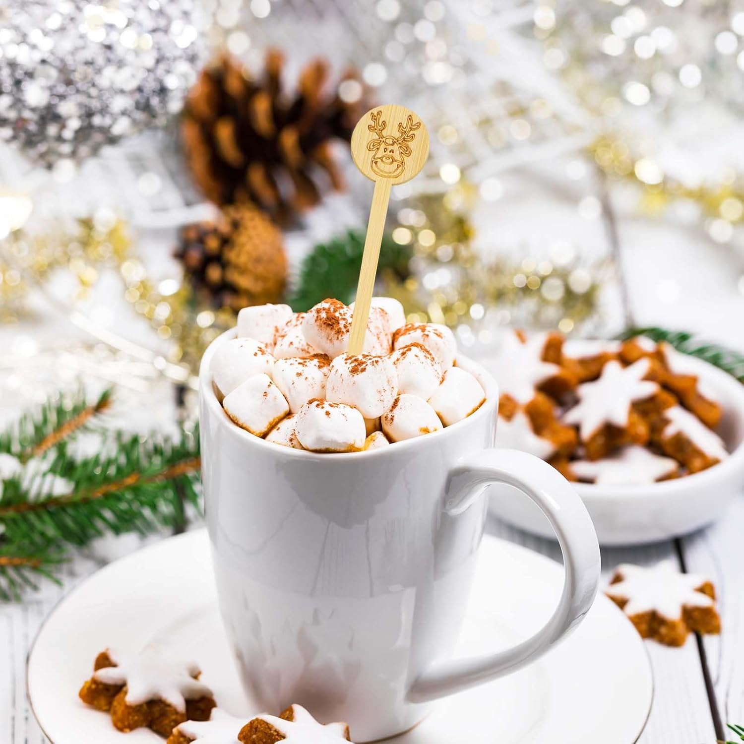 • CHRISTMAS BAMBOO COFFEE STIRRER: A gift with a Christmas atmosphere! Our bamboo coffee sticks are in line with the Christmas theme and winter atmosphere, creating a Christmas atmosphere in your home