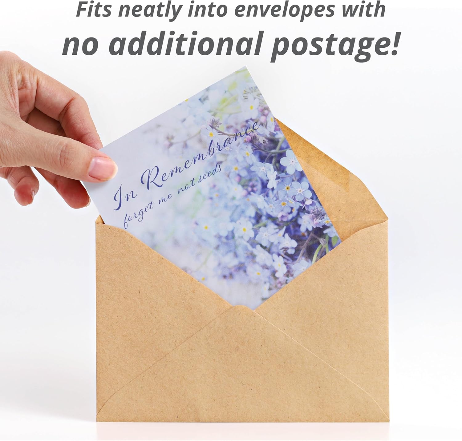 • Forget-Me-Not Design: Featuring delicate forget-me-not flowers and a poignant quote, these packets serve as meaningful memorial cards to commemorate the love and legacy of those we've lost.