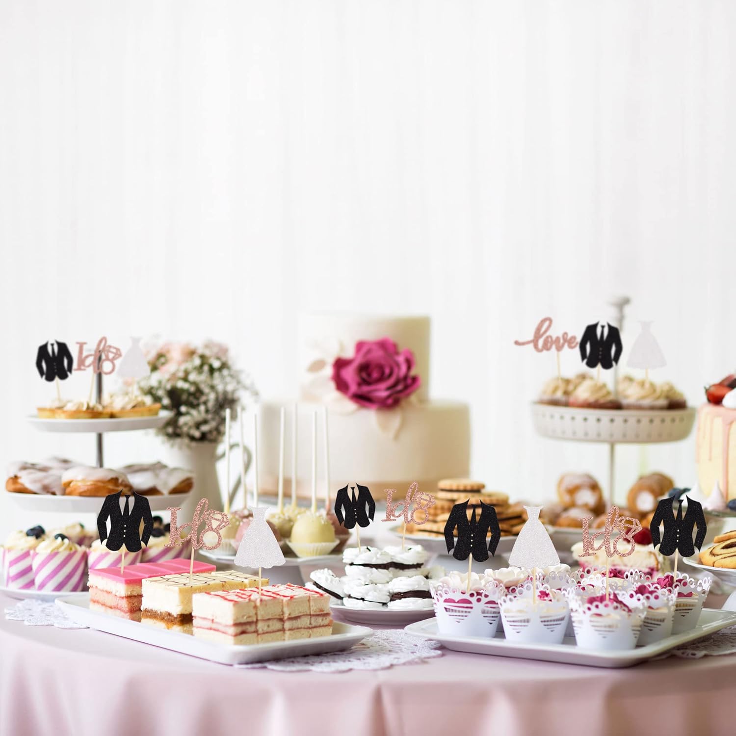 • đź’ŤThese glitter wedding cupcake toppers are so cute and good for bridal shower party, groom & bride theme party,wedding engagement party cake decoration. They can make your cupcake more attractive and bring the fun to your party. You can also apply them for ice cream, fruits, cookies and other desserts.