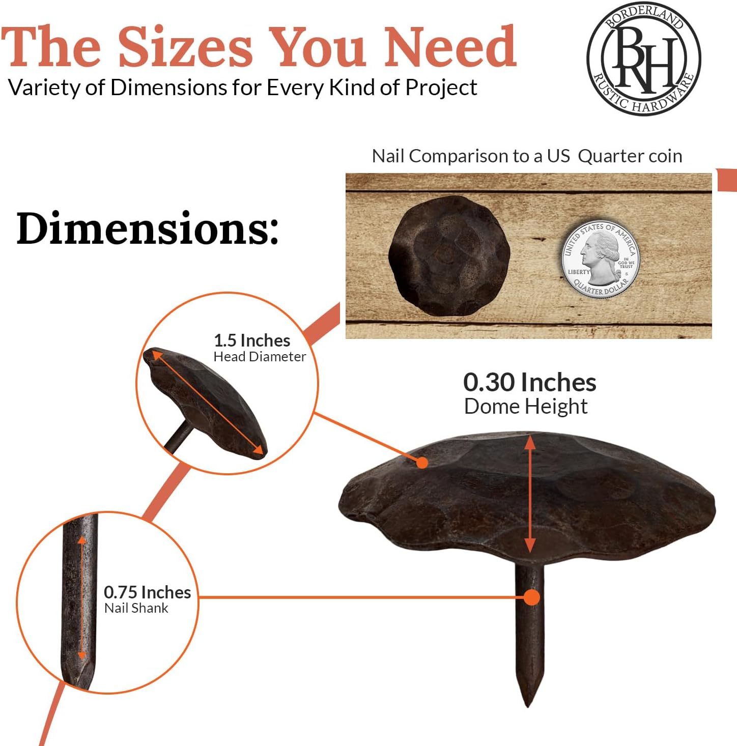 50 Pack 1.5" Round Head Iron Clavos Decorative Nails – Unfinished – Handmade Rustic Round Fasteners for Farmhouse Shutters, Faux Wood Beams, Barn Doors, Shutters, Gates – Ornamental Wood Accent