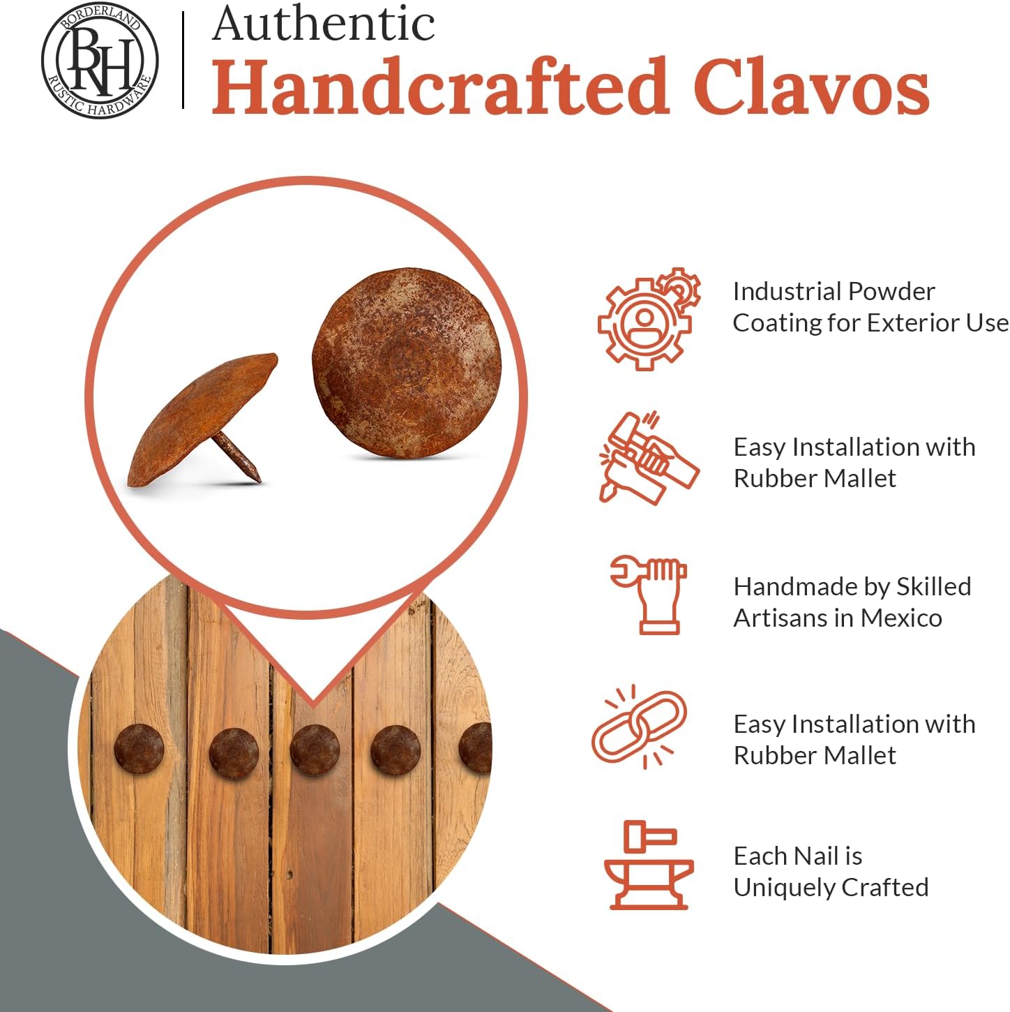 50 Pack 2" Round Head Iron Clavos Decorative Nails – Rusted – Handmade Rustic Round Fasteners for Farmhouse Shutters, Faux Wood Beams, Barn Doors, Shutters, Gates – Ornamental Wood Accent