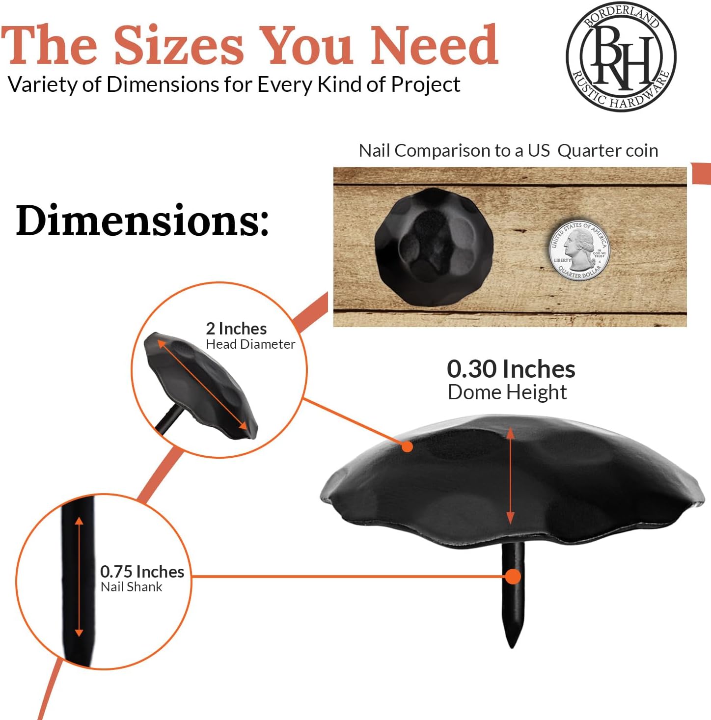 50 Pack 2" Round Head Iron Clavos Decorative Nails – Black – Handmade Rustic Round Fasteners for Farmhouse Shutters, Faux Wood Beams, Barn Doors, Shutters, Gates – Ornamental Wood Accent