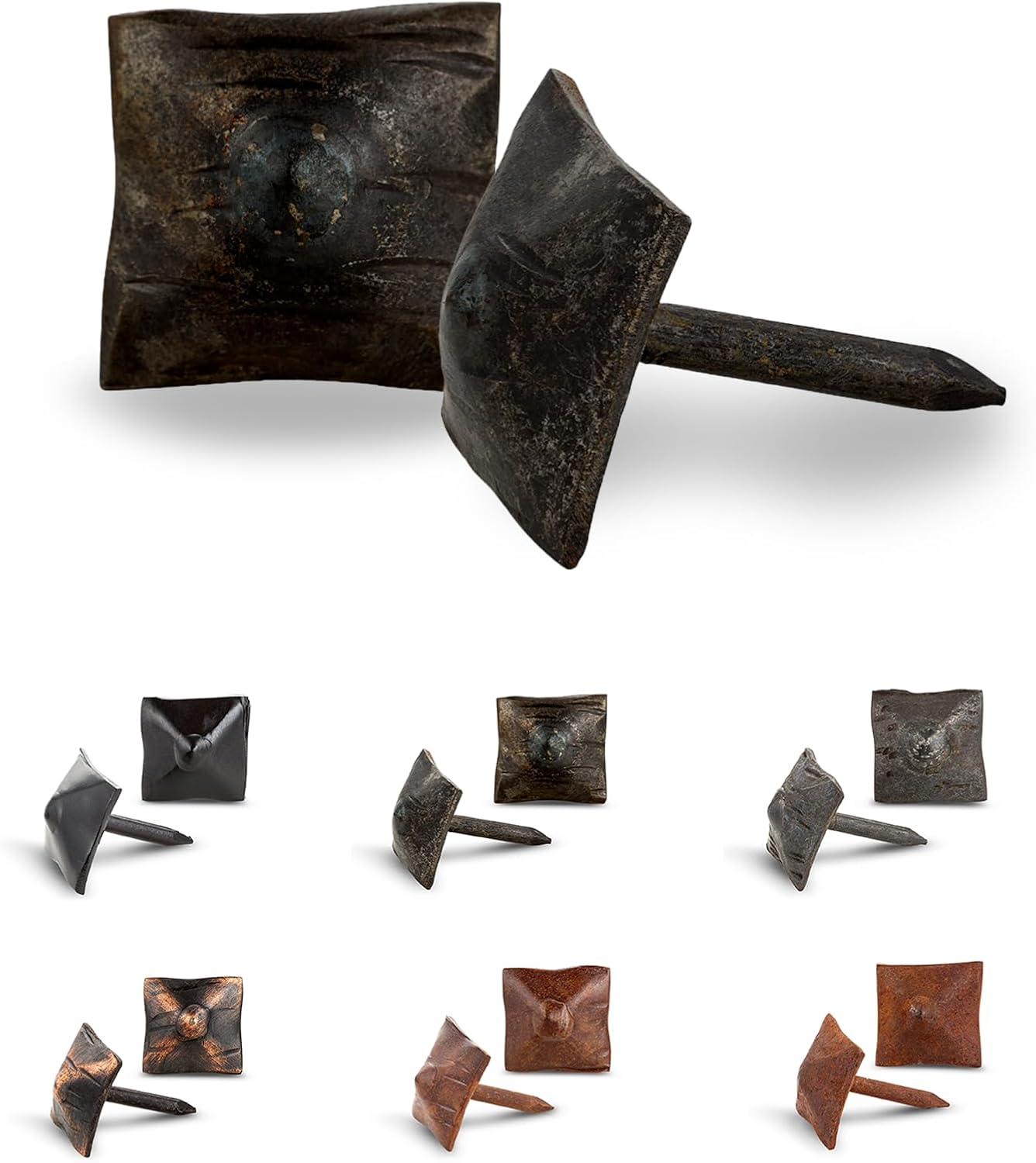 100 Pack 0.75" Square Head Iron Clavos Decorative Nails – Sealed Unfinished – Handmade Rustic Square Fasteners for Farmhouse Shutters, Faux Wood, Barn Doors, and Gates – Ornamental Wood Accent