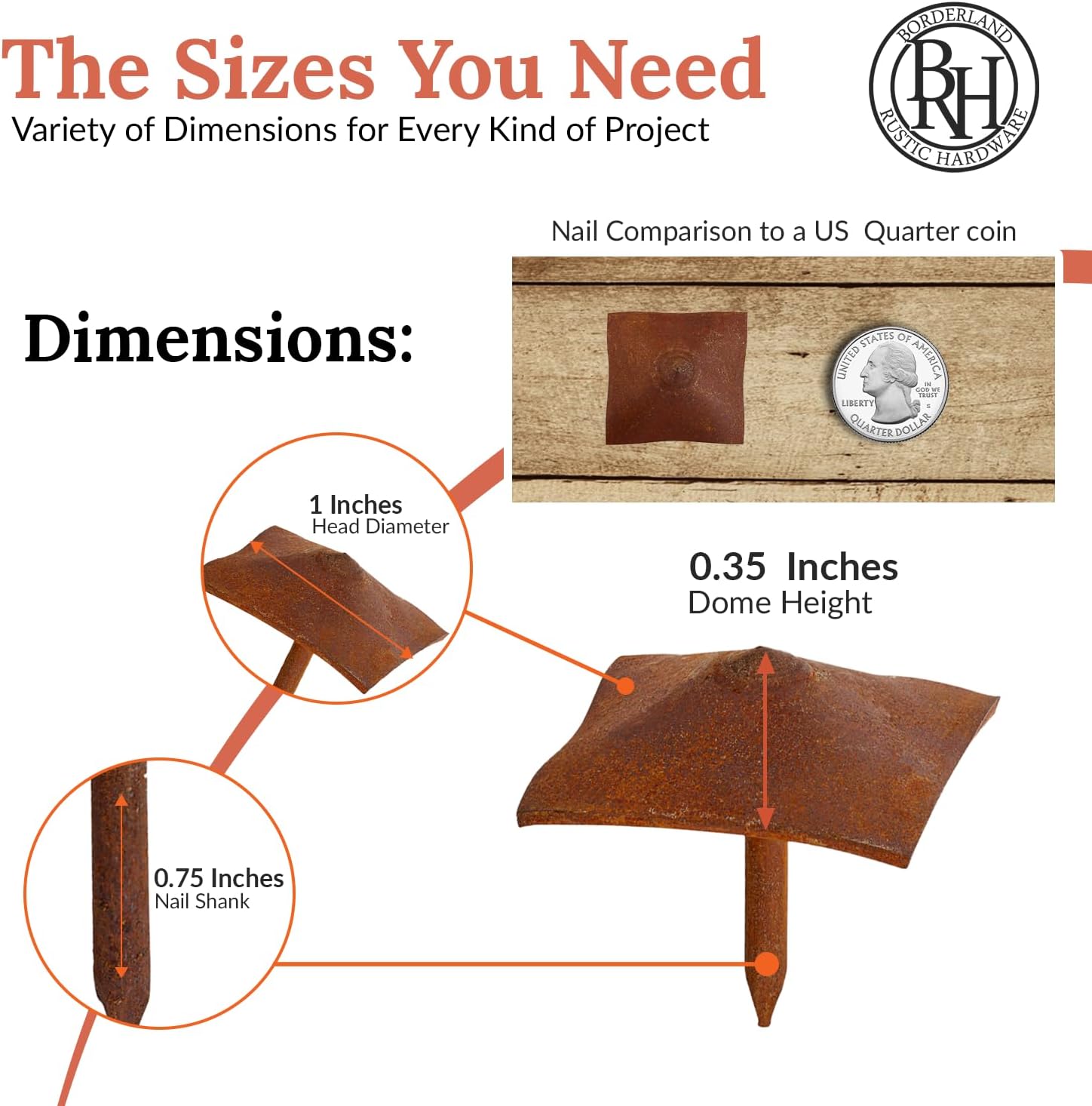 50 Pack 1" Square Head Iron Clavos Decorative Nails – Rusted – Handmade Rustic Square Fasteners for Farmhouse Shutters, Faux Wood Beams, Barn Doors, Shutters, and Gates – Ornamental Wood Accent