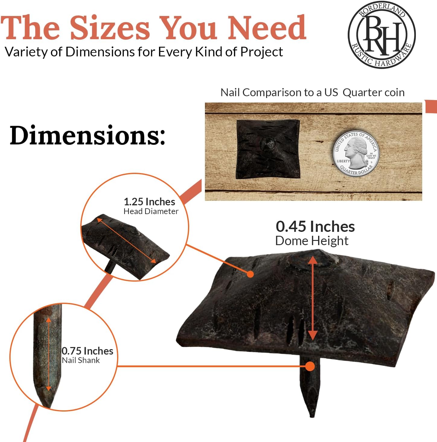 50 Pack 1.25" Square Head Iron Clavos Decorative Nails – Unfinished – Handmade Rustic Square Fasteners for Farmhouse Shutters, Faux Wood, Barn Doors, Shutters, and Gates – Ornamental Wood Accent