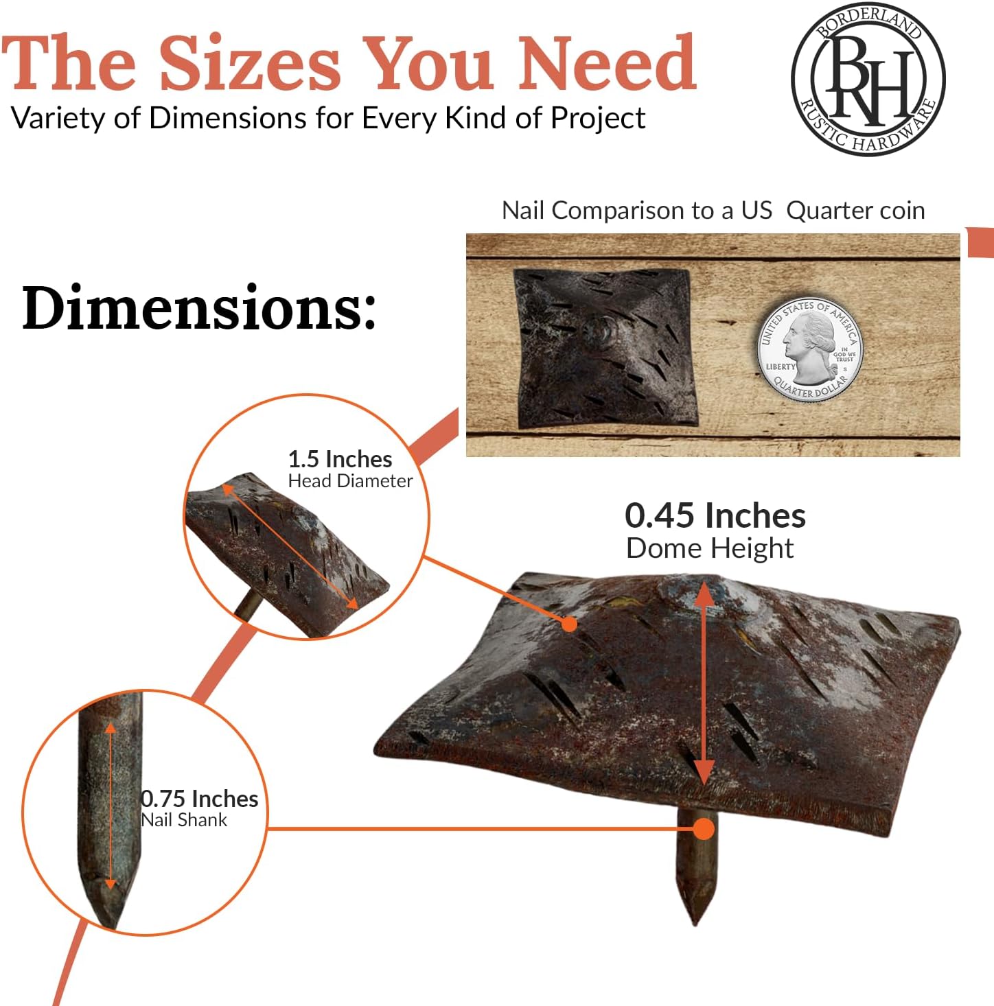 • IDEAL USES: These decorative hardware nails are perfect for a variety of applications, including barn door window shutters, exterior shutters, and faux wood beams. Ideal for upgrading wooden barn doors and farmhouse barn door hardware, they provide both functional and aesthetic enhancements to rustic and traditional projects.