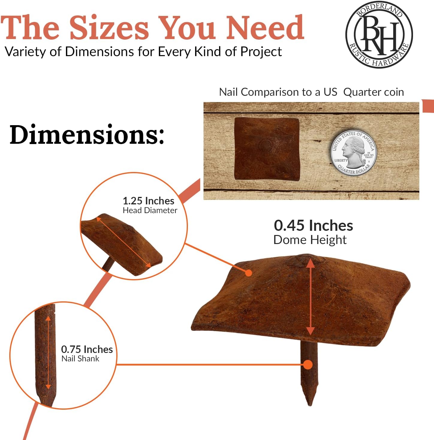 25 Pack 1.25" Square Head Iron Clavos Decorative Nails – Rusted – Handmade Rustic Square Fasteners for Farmhouse Shutters, Faux Wood Beams, Barn Doors, Shutters, and Gates – Ornamental Wood Accent