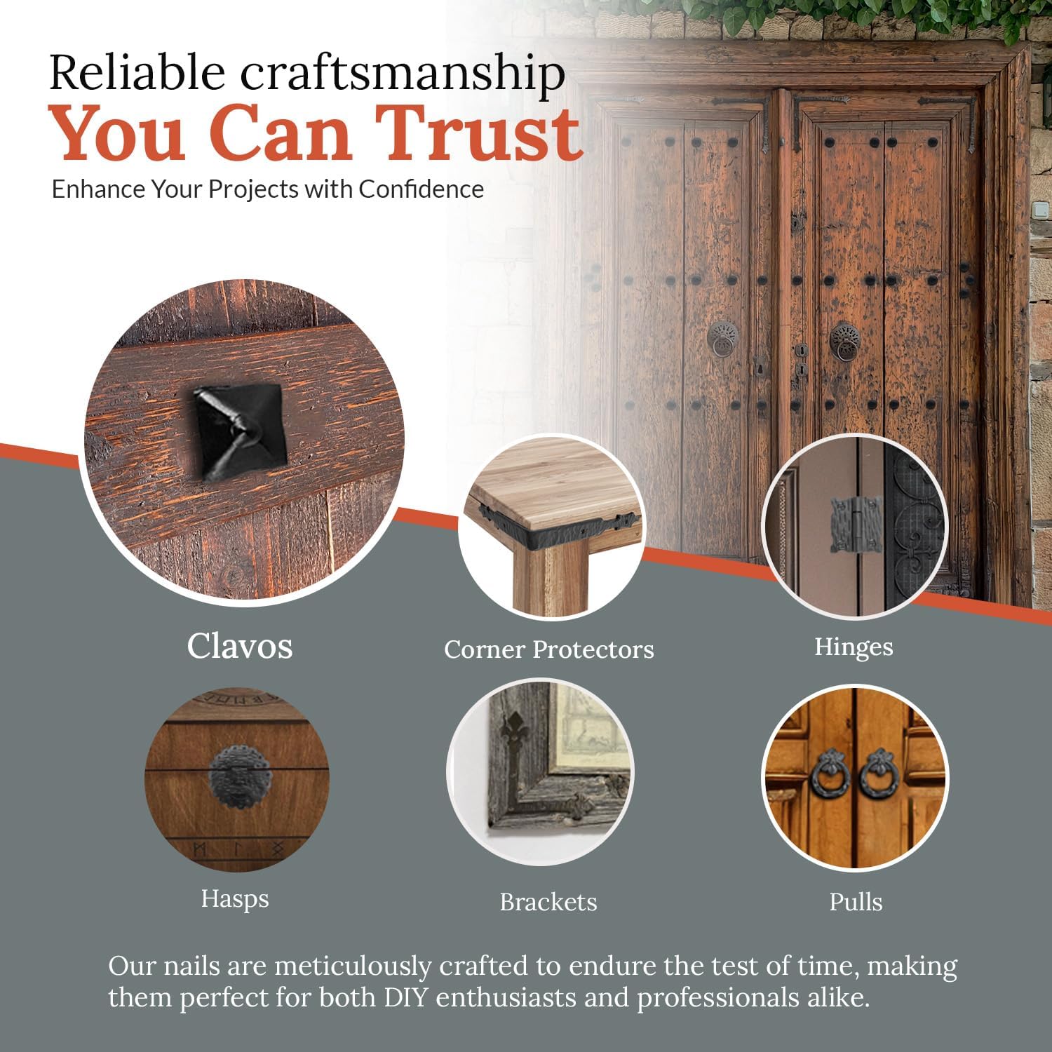 • IDEAL USES: These decorative hardware nails are perfect for a variety of applications, including barn door window shutters, exterior shutters, and faux wood beams. Ideal for upgrading wooden barn doors and farmhouse barn door hardware, they provide both functional and aesthetic enhancements to rustic and traditional projects.