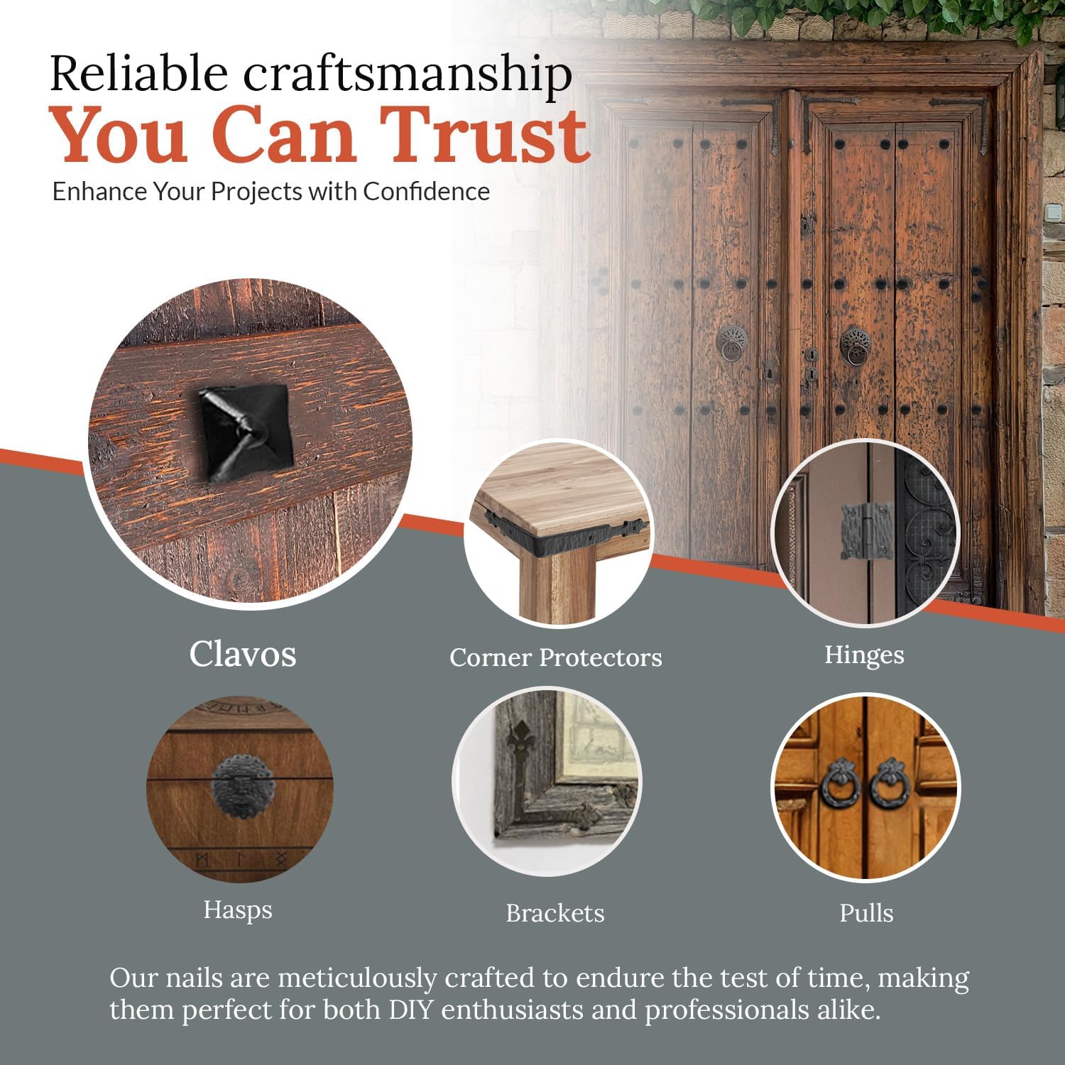 • IDEAL USES: These decorative hardware nails are perfect for a variety of applications, including barn door window shutters, exterior shutters, and faux wood beams. Ideal for upgrading wooden barn doors and farmhouse barn door hardware, they provide both functional and aesthetic enhancements to rustic and traditional projects.