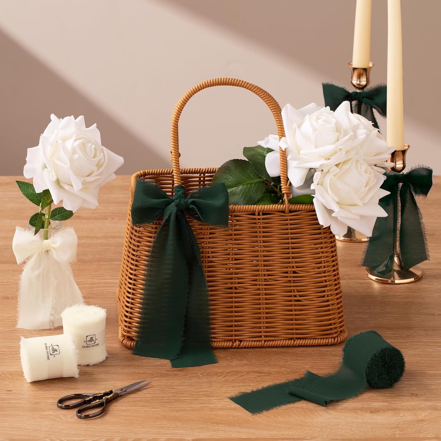 • 【Multiple Applications】This chiffon silk ribbon is great for gift wrapping, wedding decorations, wedding invitations, birthday parties, holiday celebrations, bridal showers, newborn photography props, wedding aisle backgrounds, boutonnieres, flower girl baskets, bouquet wrapping ribbons, Easter baskets, and even Christmas gift wrapping. Its elegant appearance makes it an ideal choice for bohemian or rustic DIY projects.