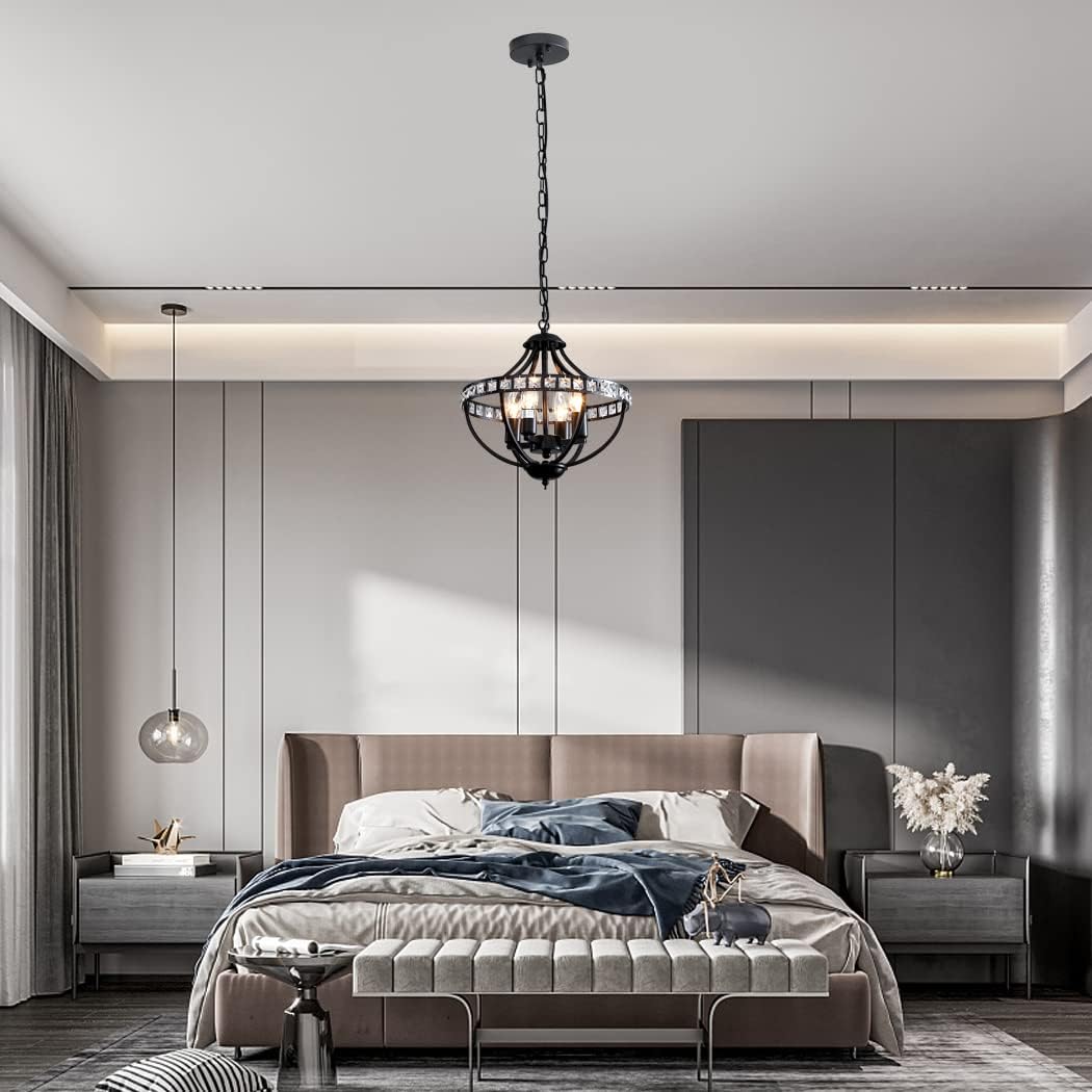 • β˜€ Crystal Chandelier: This 4-Light black crystal chandelier is made of iron artisanal finish, features crystal tube is shiny, crystal home decor. It's the focal point of your home renovation, you'll absolutely fall in love with it.features crystal tube is shiny, crystal home decor
