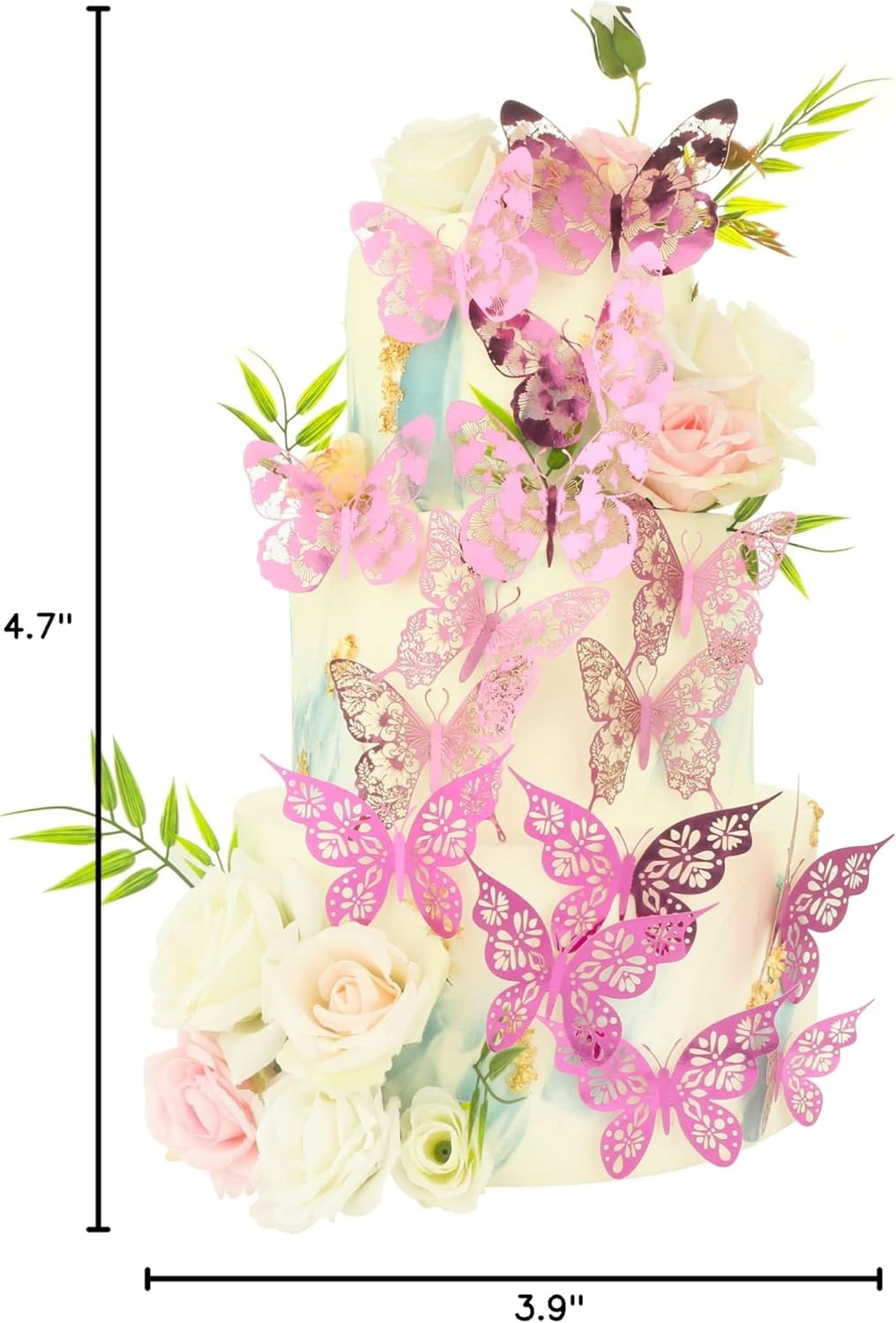 Gyufise Rose Red Butterfly Cupcake Toppers Hollow Art 3D Butterfly Cupcake Decorations Baby Shower Wedding Anniversary Kids Birthday Party Cake Wall Decorations Supplies 36Pcs