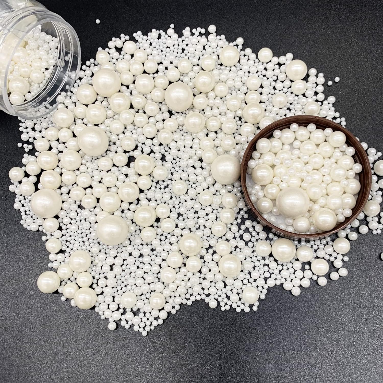 • Package includes :1 bottle edible white pearl sugar sprinkles candy ,4.58oz/130g.Ingredients: Sugar, Beet Root, Spirulina, Carnauba Wax,Gluten free๏ผŒNut free