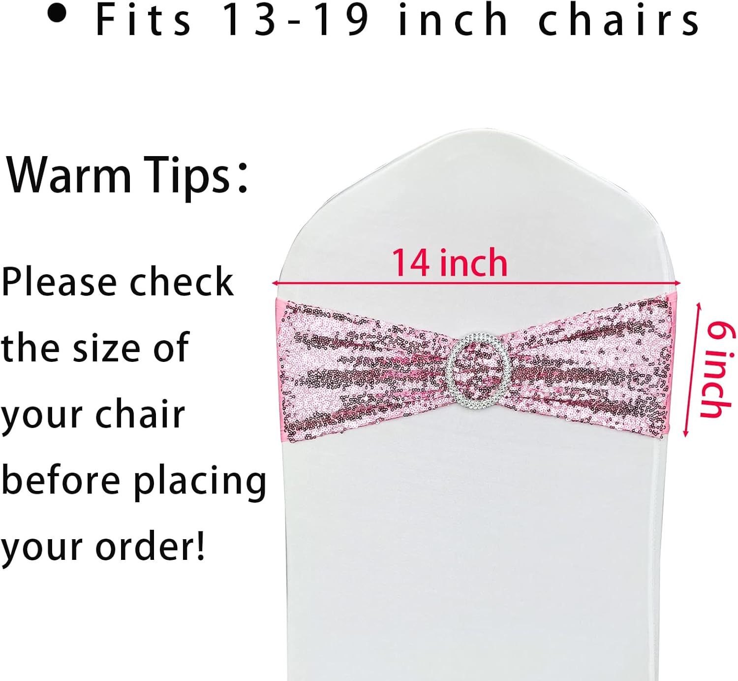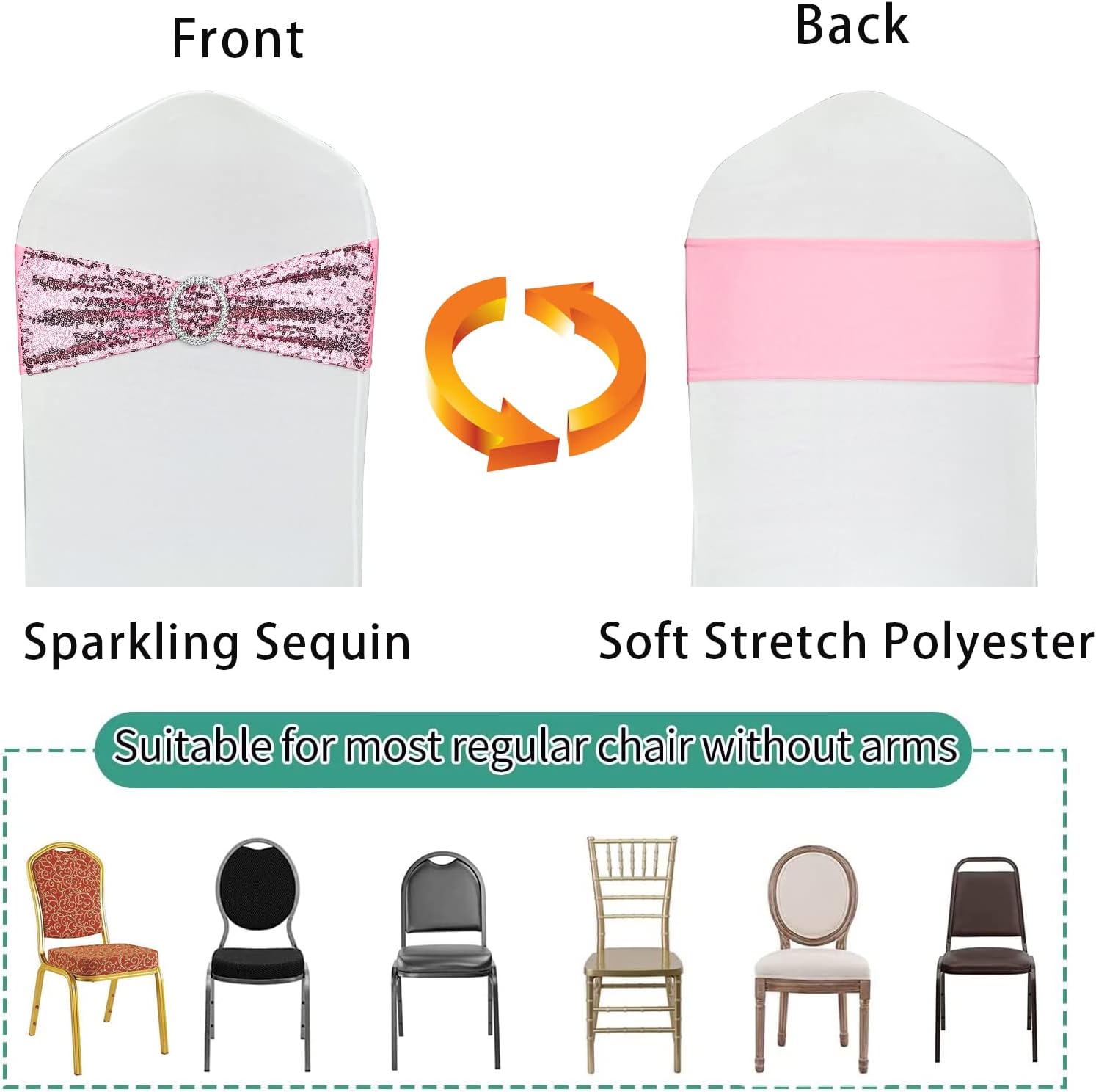 10 Pcs Chair Sashes Sequin Stretch Chair Bands Spandex Polyester Bows for Party Hotel Wedding Banquets Decoration - Pink